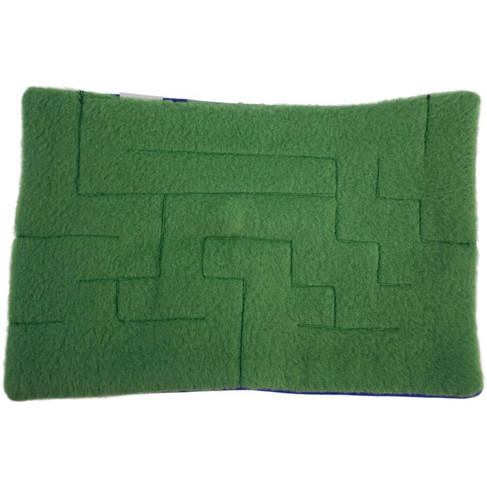 - Soft blue and green fabric mat provides comforting sensory feedback with fabric exterior, visible and clearly felt stitched maze lines, and 3D feel of inner marble