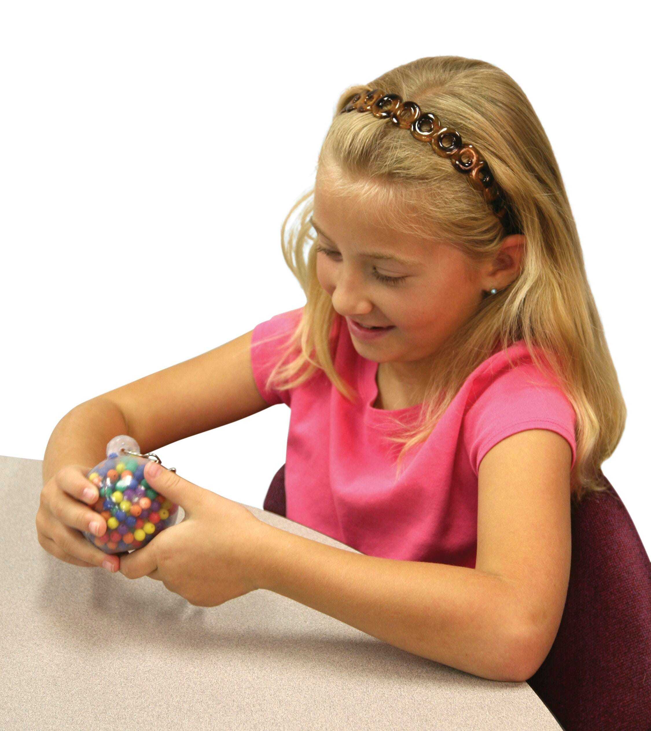This durable, indestructible Fidget Ball goes wherever your fidgeter goes! Just hook it to a backpack or purse and the fidget is a squeeze away. Small colored balls that add another dimension to the tactile and fine motor experience. Measures 2-3/4 inches in diameter.Features