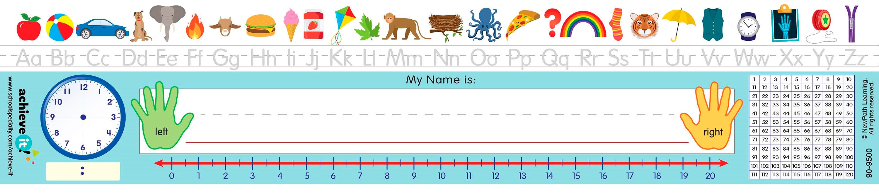 - Includes multiplication tables, shapes, ruler, alphabet, number line and more