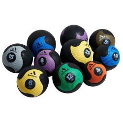 These well-balanced medicine balls are a great companion for a variety of workouts. Assists with upper body and core strength training. Textured surface allows for better grip and maintains its round shape. Made with natural rubber and free of phthalates. 9 inch diameter. Not meant for slamming exercises.Features