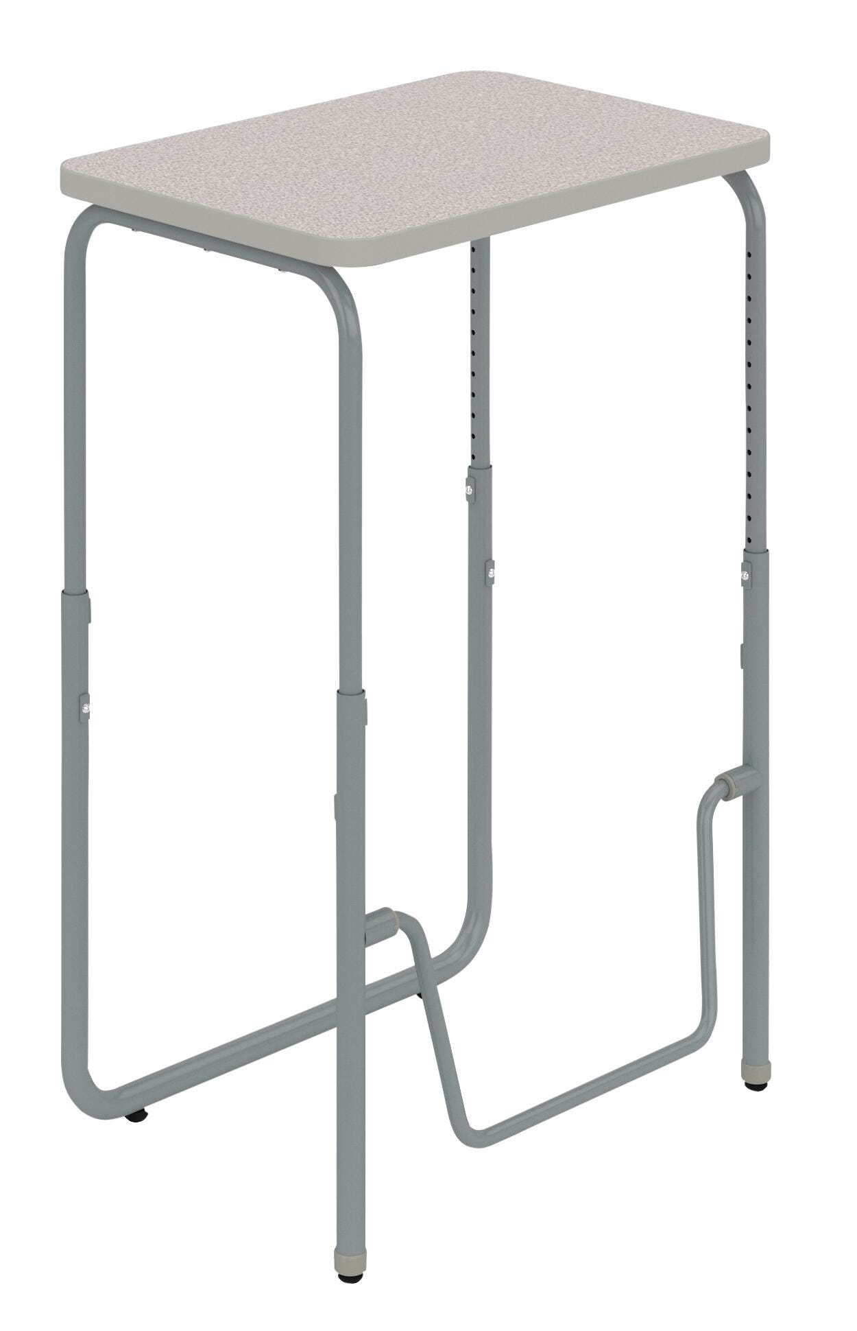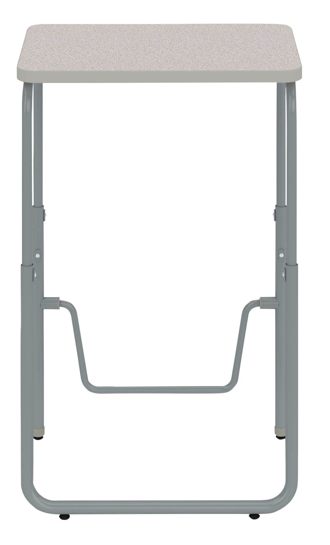 Crafted with a pebble gray laminate top, this desk comfortably accommodates students of all sizes as they work or sketch ideas. The pendulum footrest allows students to redirect excess energy and continue to move, even as they sit – providing ergonomic support, increasing comfort, and promoting cardiovascular health. Great for boosting productivity and focus, this student desk has the added benefit of optional casters for better mobility throughout the classroom, and a convenient book cubby right beneath the desktop. All 22- to 43-inch desks accommodate K-12th grade students as well as adults at seated height, and K-4th grade students at standing height.Features