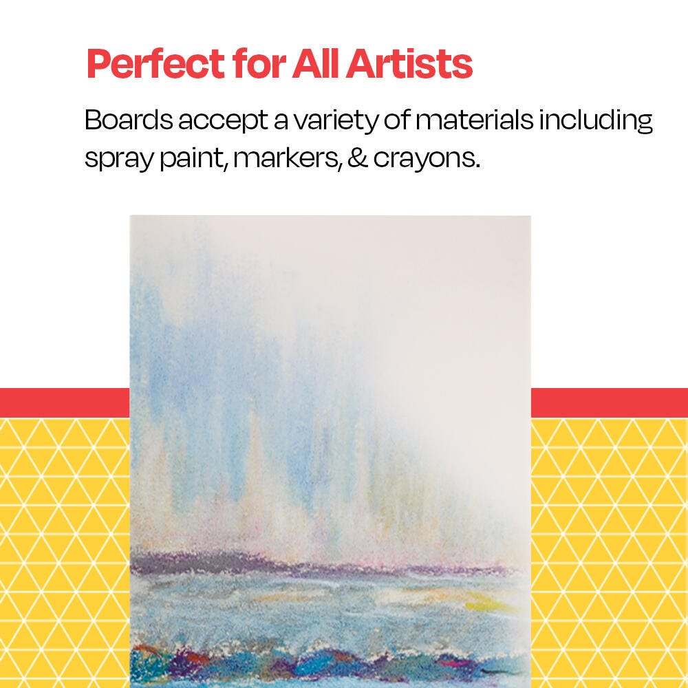 Surface can be decorated with media like glue, paint, markers, screen printing, and more