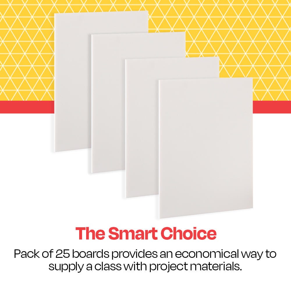 Lightweight and smooth, School Smart White Foam Boards are made of high quality, 3/16 inch thick white foam and are an ideal option for a wide variety of craft and display projects. School Smart foam boards are available in several sizes and pack options (each sold separately). Each foam board in this 25-pack measures 9 x 12 inches.
