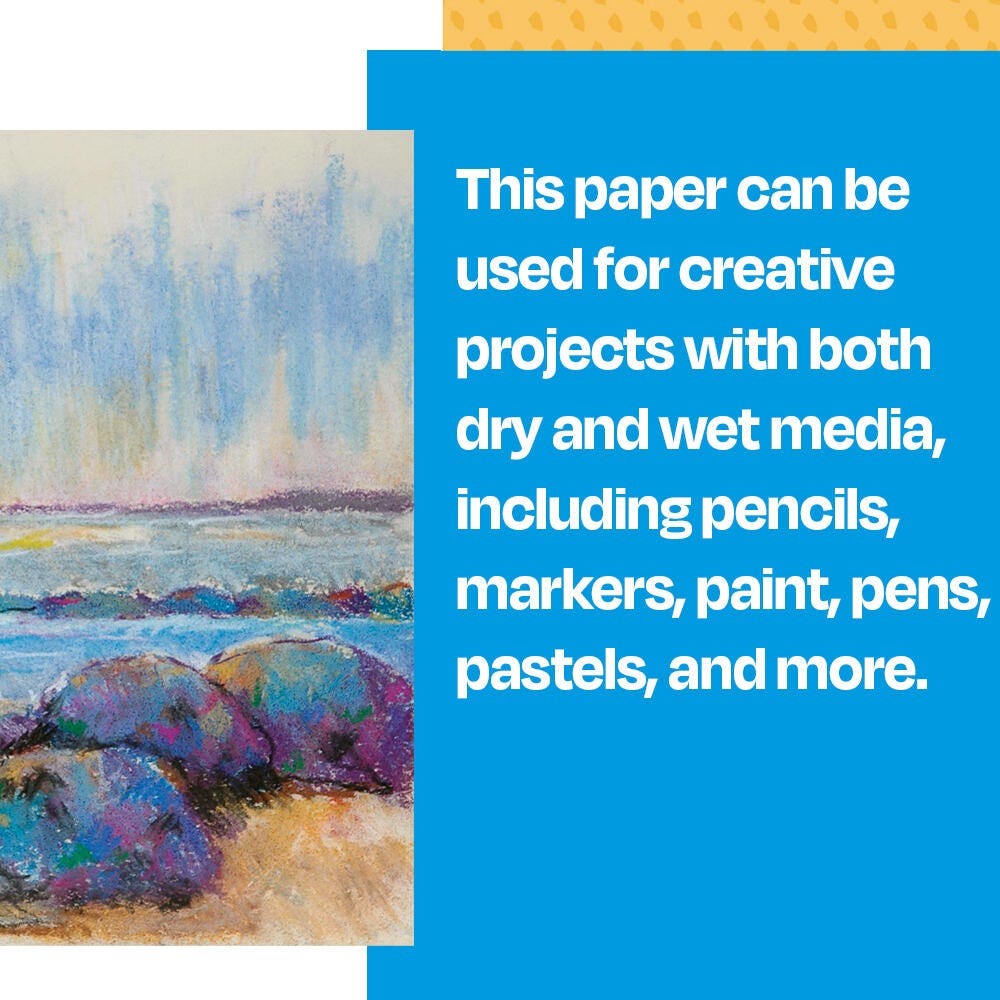Perfect for use with dry media, markers, crayons, colored pencils, pens, charcoal, and light washes of wet media