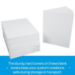 These Hardcover Blank Books from Sax are a versatile and fun addition to any classroom or art studio! Use them to write and illustrate your own books, as a journal, or document a special event! The high-quality, bright white pages are suitable for both dry and wet media, allowing for endless ways to create and customize. These books are portrait-style, measure 8-1/2 x 11 inches, and have 14 double-sided sheets to provide 28 usable pages. This pack contains 24 books.Features
