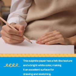 This ream of drawing paper from Sax is an excellent choice for beginners learning to draw or for experienced illustrators. The high-quality, 100 percent sulphite paper is a standard weight and is suitable for dry media and wet media, including tempera, watercolor, and brushed-applied ink. it has exceptional body and strength, a perfect texture for all dry media renderings, and erases well. The brilliant white color enhances the depth of colored pencil, heavy black pencil, and charcoal drawings.Features