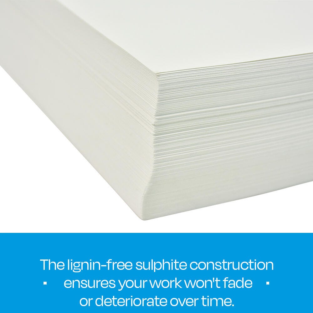 This high-quality, 100 percent sulphite paper from Sax is standard weight and accepts dry media and wet media, including tempera, watercolor, and brushed-applied ink. The paper has exceptional body and strength, perfect texture for all dry media renderings, and erases well. The brilliant white stock enhances colored pencil, heavy black pencil, and charcoal drawings.