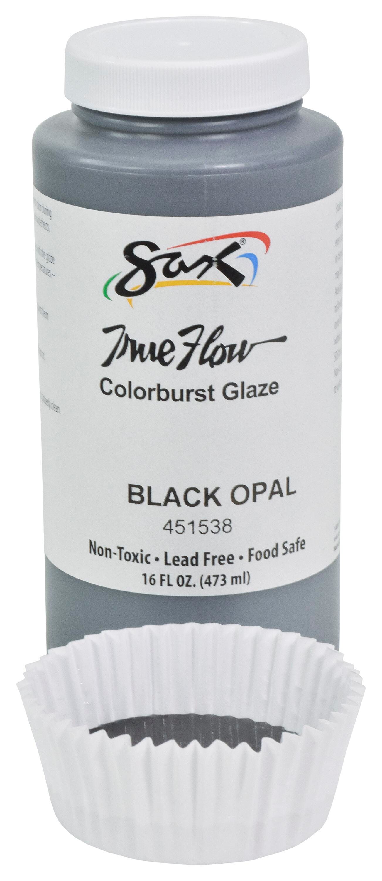 Sax Colorburst Glaze in Black Opal is ideal for one-of-a-kind pieces. Every application and firing will produce different results for beautiful, unique pottery and ceramics. The painting glaze may appear a different color during application and change to the desired look after the required firing in a kiln. Our ceramic glaze paint creates multi-colored patterns and designs when fired, with options to create dramatic effects by combining other glazes within a similar firing range. The base glaze boils and crystals lose shape and fade when fired at cone 6.