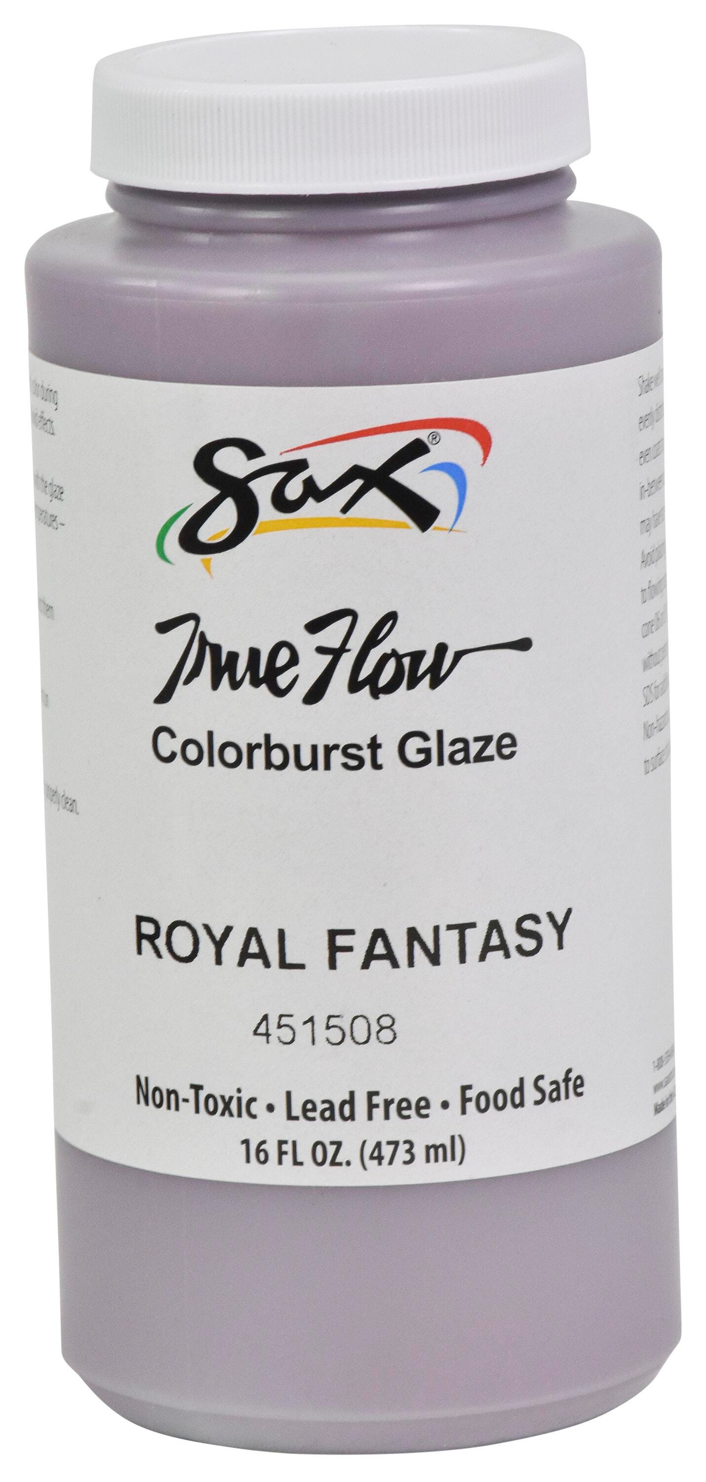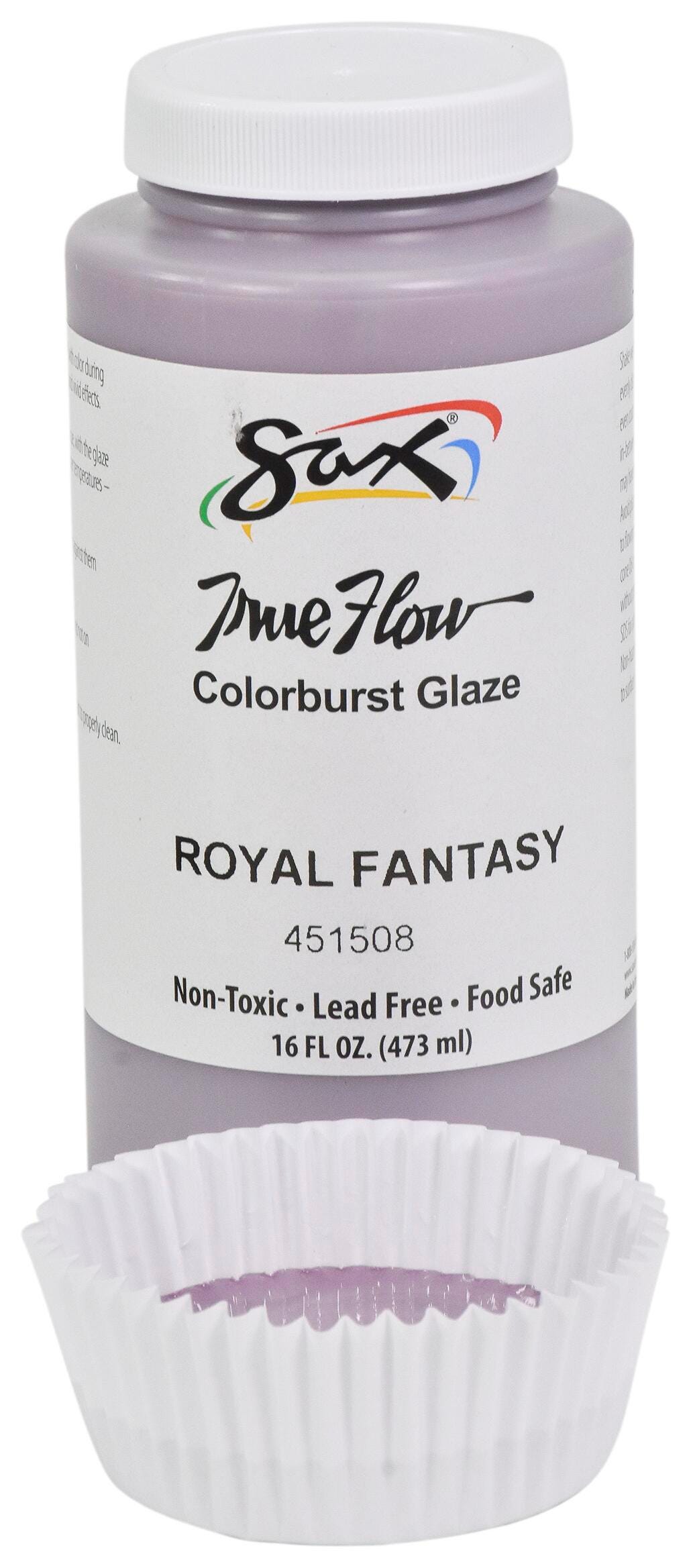 Sax Colorburst Glaze in Royal Fantasy is ideal for one-of-a-kind pieces. Every application and firing will produce different results for beautiful, unique pottery and ceramics. The painting glaze may appear a different color during application and change to the desired look after the required firing in a kiln. Our ceramic glaze paint creates multi-colored patterns and designs when fired, with options to create dramatic effects by combining other glazes within a similar firing range. The color turns blue with purple mottling and crystals disappear when fired at cone 6.