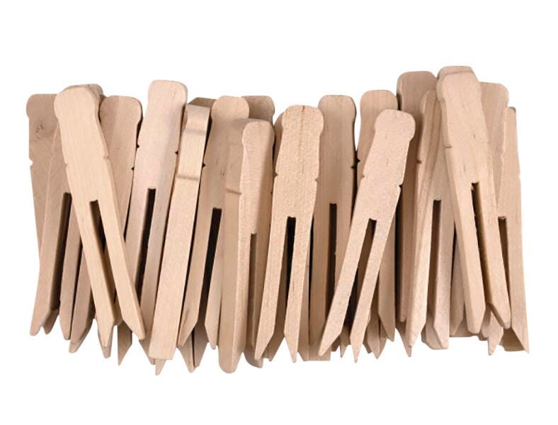 These Creativity Street Clothespins measure 3-3/4 inches each and are made of wood with a natural finish. Designed with two flat sides, these no-roll clothespins can be used to create intricate figurines, structures, and decorative craft projects at a low price. Includes project instructions. Sold as a pack of 40.