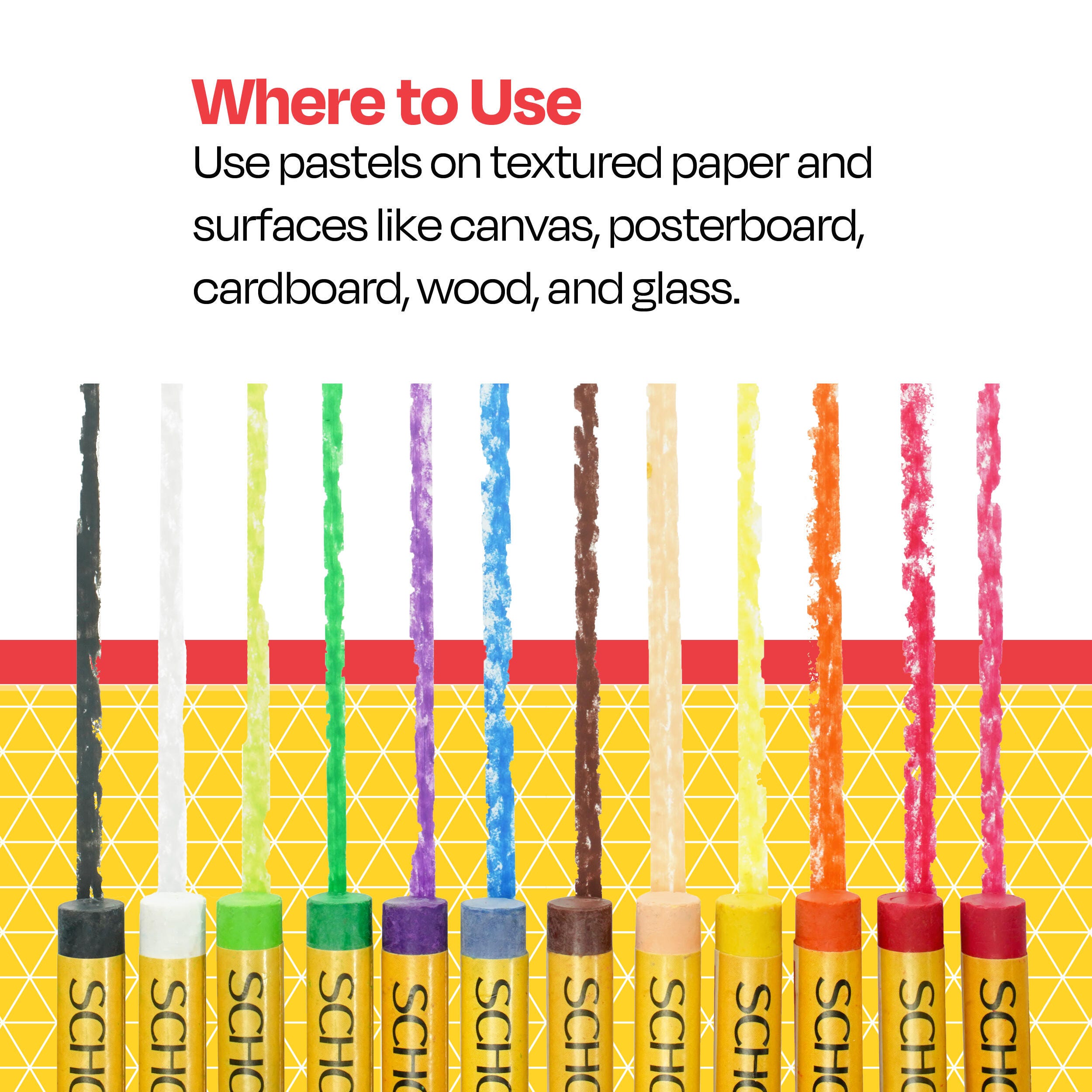School Smart oil pastels combine the performance and luster of oils with the workability of pastels. The brilliant colors blend and smooth easily to create masterpieces on smooth or textured paper. Great for use in the classroom, home, or studio - these pastel crayons make a great addition to art class in elementary, middle, or high school.