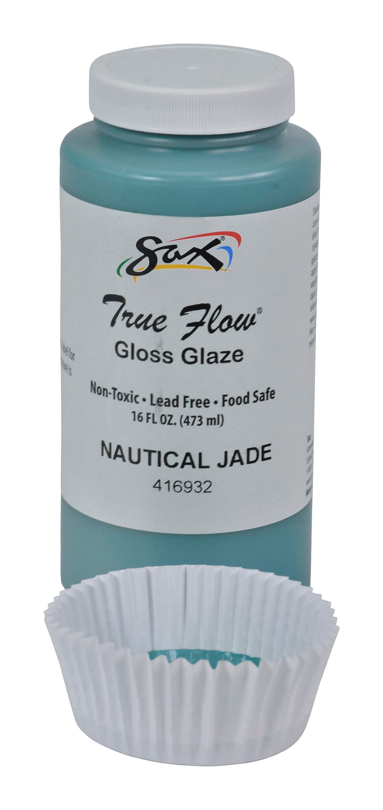 The Sax gloss glaze in opaque Nautical Jade is a high-quality glazing paint that's dinnerware safe when fired to cone 06-05. During application, the glaze may be a different color and will change to the desired look after the required kiln firing. The color does not change when fired at cone 6.
