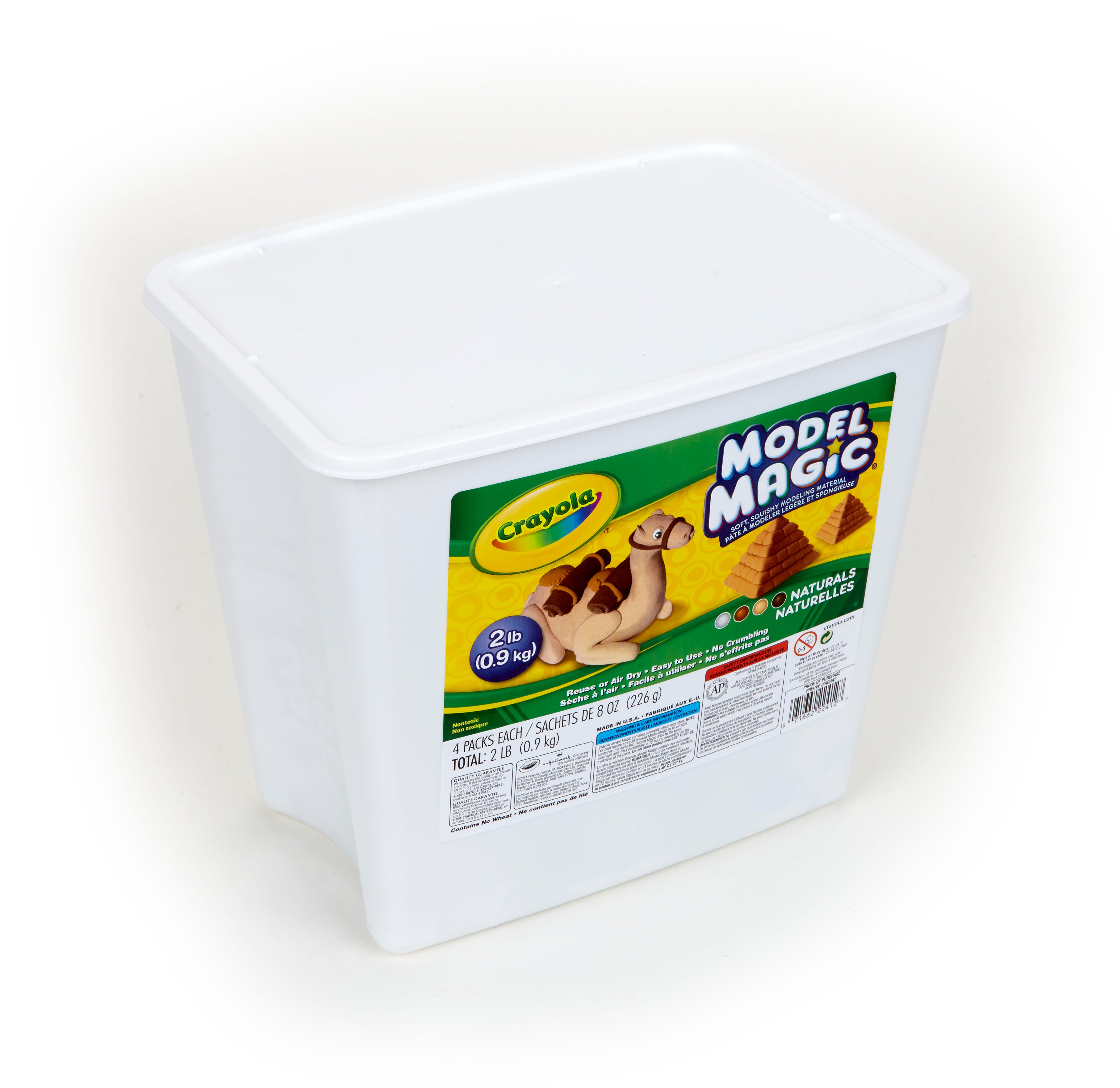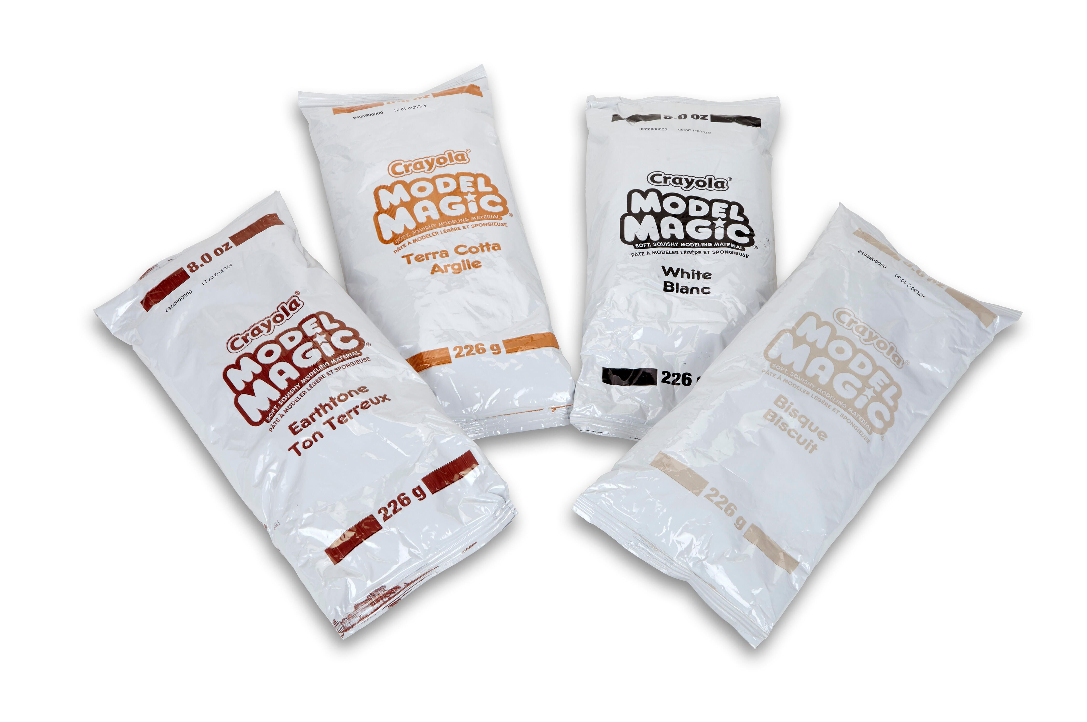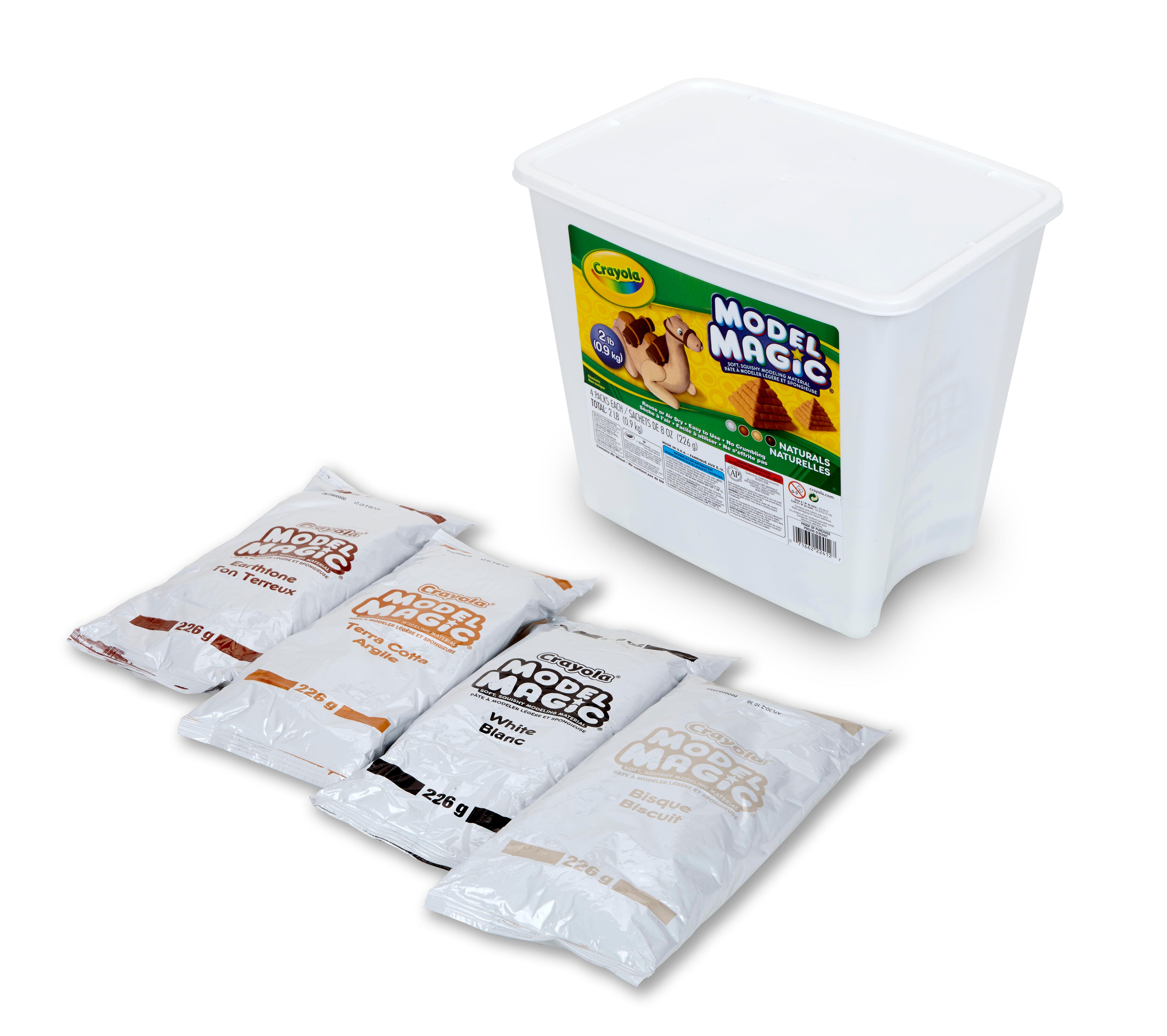 Little artists in training won't be able to get their hands off Crayola Model Magic Modeling Dough! The soft, responsive, moldable dough is ready for making masks, molded figurines, slime, and more, right out of the package. The child-friendly material is odorless, non-greasy, and does not stick to skin or most fabric, perfect for first-time sculptors ages 3 and up! Plus, the lightweight dough takes form without flaking or crumbling and air dries to a slightly flexible and resilient state. This set contains 4 packets (8 ounces each), 1 each of the following natural colors: terra-cotta, earthtone, bisque and white