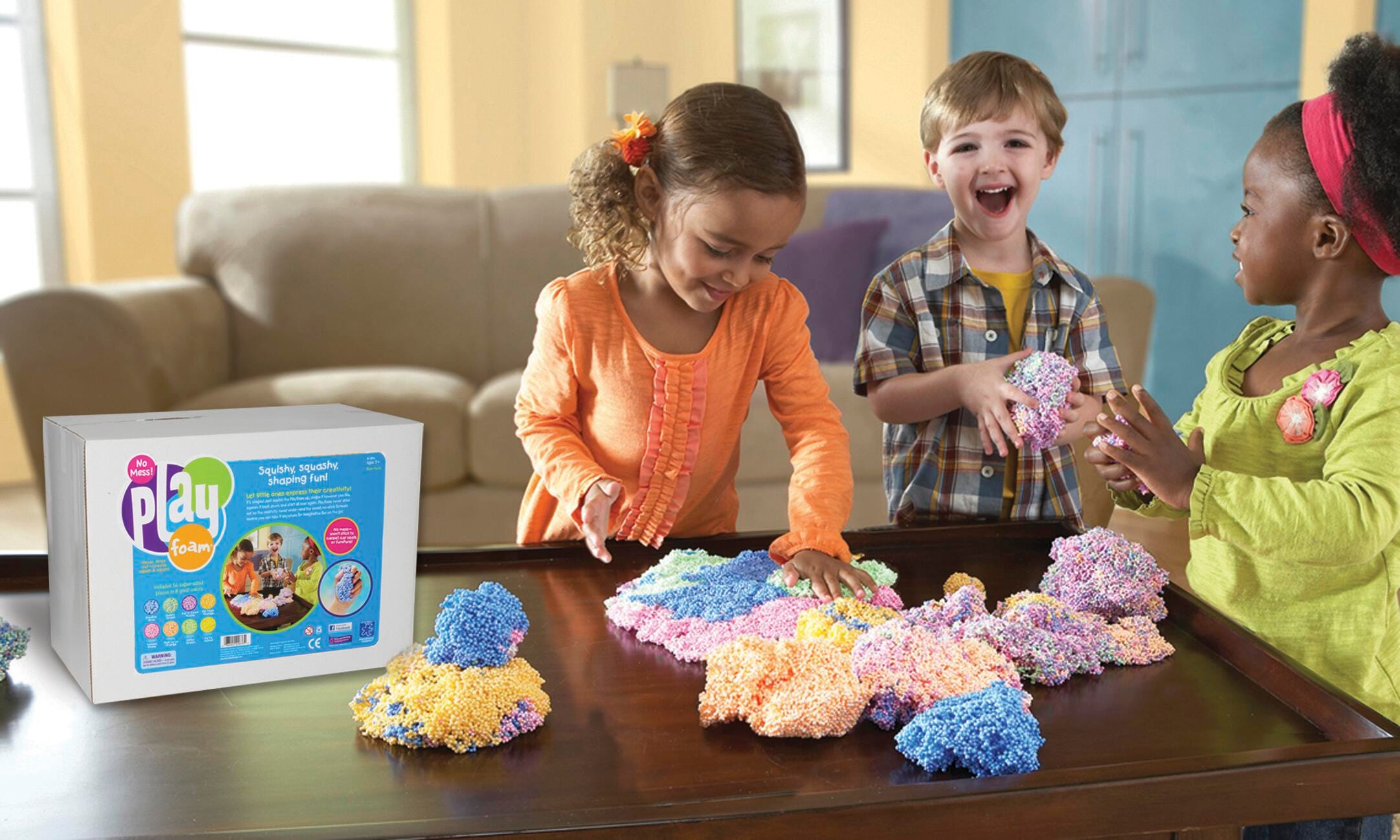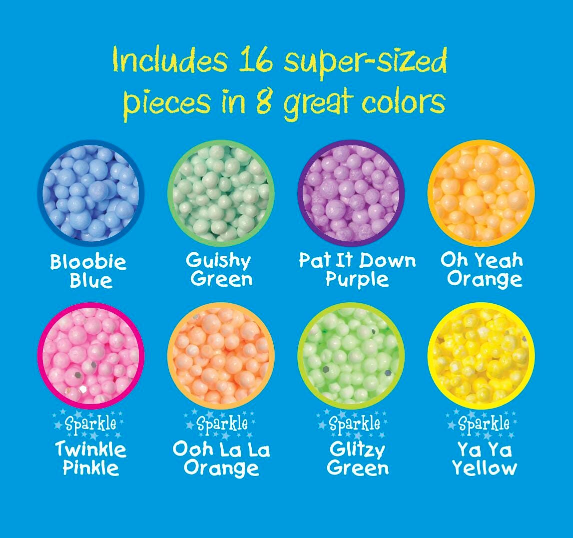 Educational Insights Playfoam Reusable Modeling Dough Classroom Pack allows preschoolers to express their creativity. The remoldable sculpting beads come in multiple colors. Dough is reusable, not messy and never dries out so the creativity never ends. Nontoxic playfoam featuring secret no stick formula can be squashed and is totally portable. Each color comes in its own zip-closed bag. Set includes 16 bricks in 8 assorted colors. Pre-K and Up. Comes in the following colors: bloobie blue, guishy green, pat it down purple, oh yeah orange, twinkle pinkle, ooh la la orange, glitzy green, and ya ya yellow.