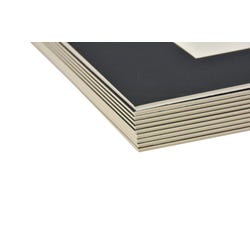 Your students' artwork deserves a quality presentation—and these pre-cut mats from Crescent have you (and your artistic masterpieces) covered. Sturdy, buffered cardboard frame (measuring 22 x 28 inches) comes in solid black with a perfectly sliced-out window middle (measuring 17-1/2 x 23-1/2 inches) and a backboard for instant insertion of your photo or art print. Clean 45-degree bevel cuts add a refined look to the corners. Uniform lines allow you to position pictures either vertically or horizontally. Backing boards have a smooth finish on 1 side and a linen-like texture on the other; note that colors of both sides may vary (Applies to backboards only). Set of 10 pre-cut mats.Features
