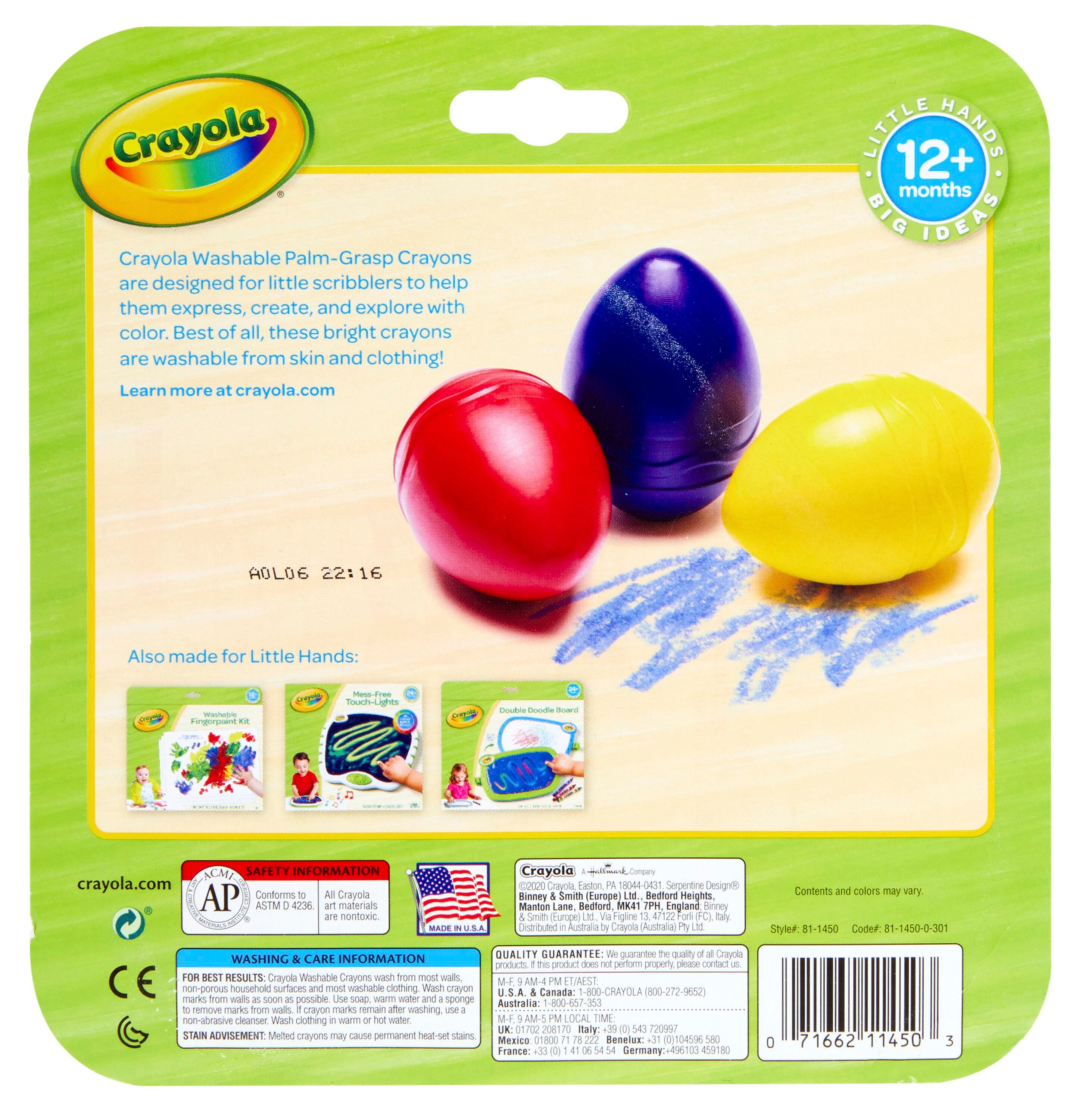 Crayola Washable Palm-Grasp Crayons, Assorted Colors, Set of 3