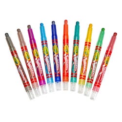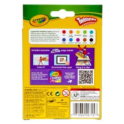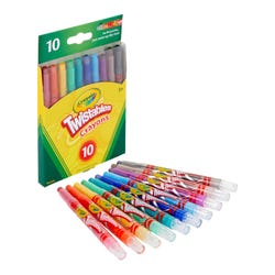The Crayola Twistables Crayons keep the color going with just a twist! The convenient Mini Twistables Crayons offer bold color and smooth laydown, without any sharpening. Plus, the durable plastic barrels help prevent crayon breakage. This set contains 10 Mini Twistable Crayons, 1 in each of the following colors: red, red orange, dandellion, yellow green, blue gree, indigo, cerulean, red violet, brown, and black.