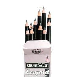 General's Layout pencils have been used by animators since the 1930's. The round barrel is constructed from genuine incense cedar wood and have a heavy black graphite lead that is equivalent to a 6B.Features