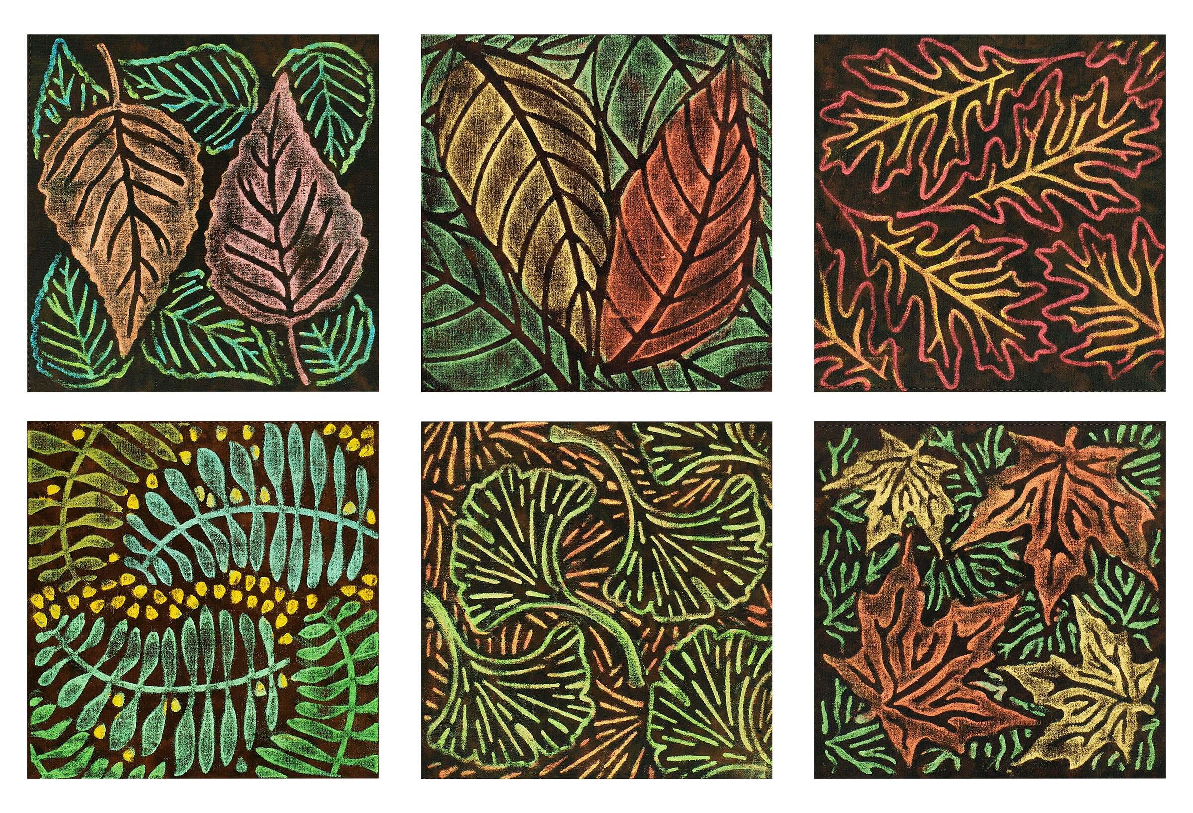 Jack Richeson Leaves Rubbing Plate, 7 x 7 Inches, Set of 6