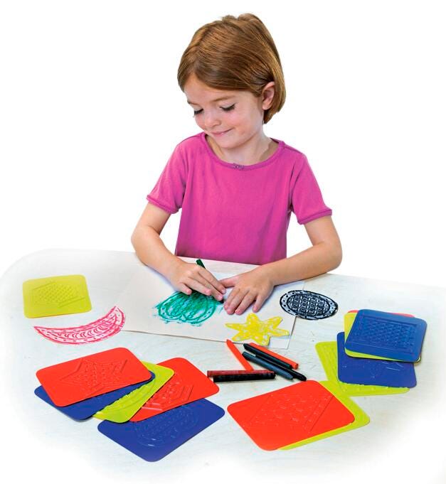 Fun and easy-to-use rubbing plates are designed to artistically inspire children of all ages and abilities! Perfect for exploring shapes and patterns through touch.