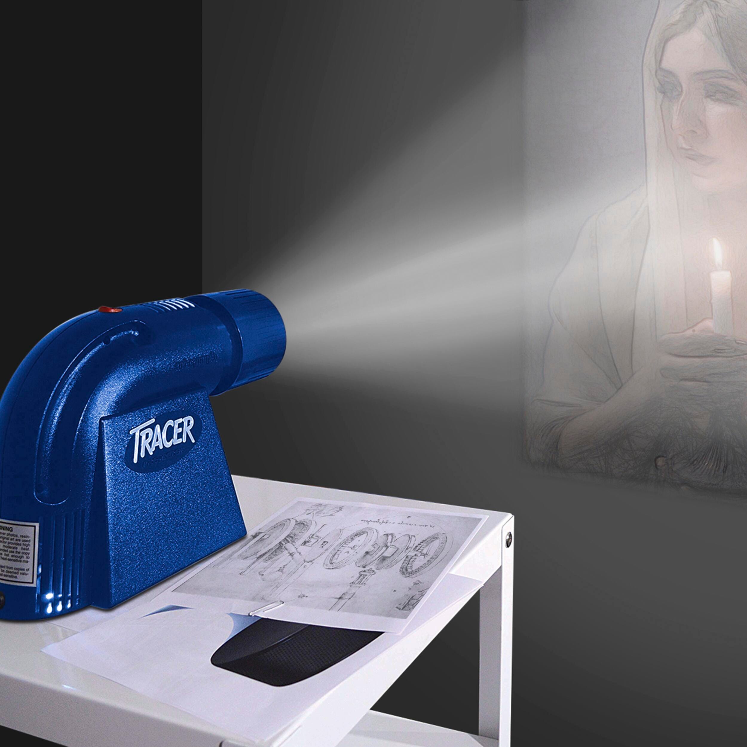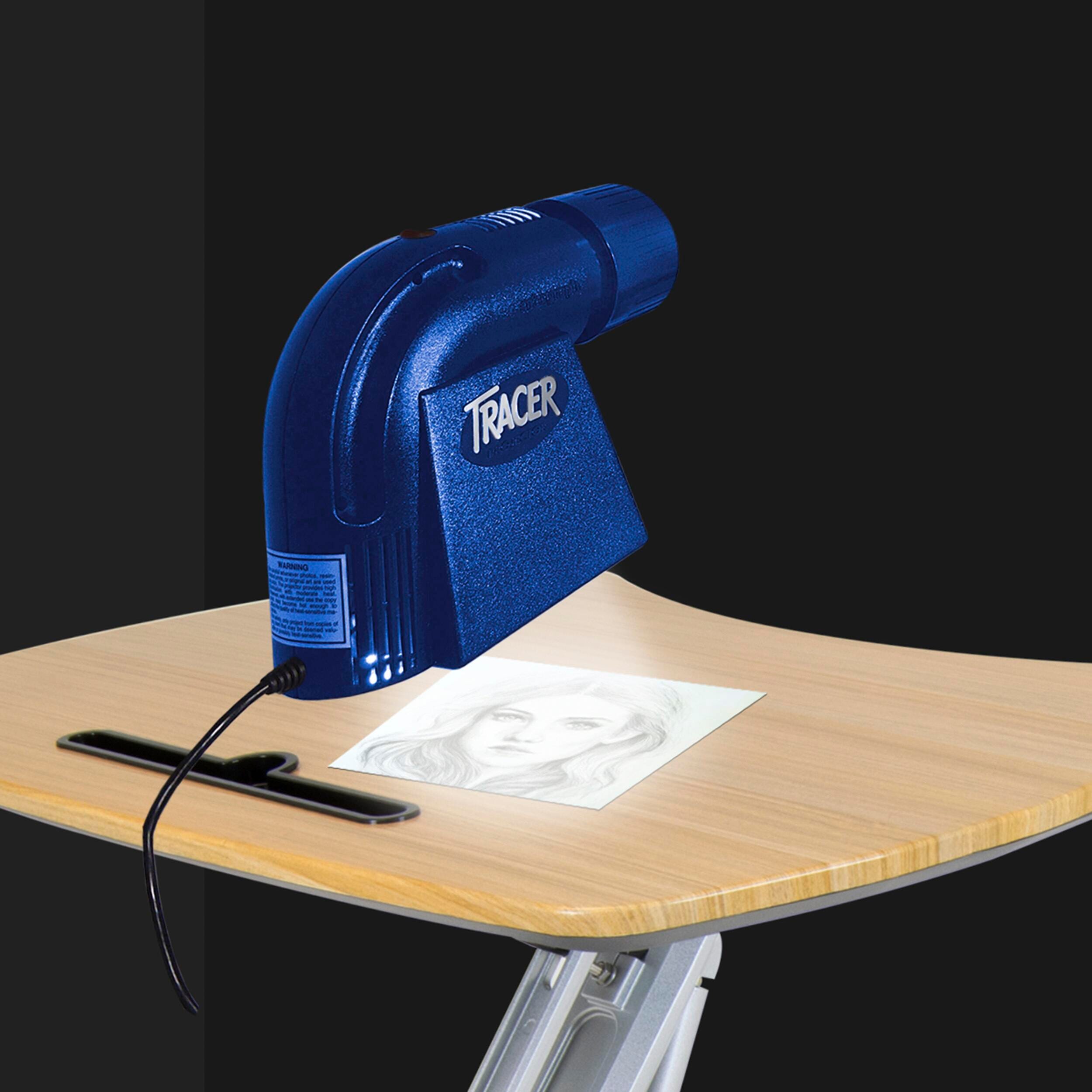 View, trace, and color any design or image with LED Tracer Projector and Enlarger from Artograph. Lightweight and portable, this projector weighs 3 pounds and enlarges up to 14 times the original size. The 5 x 5 inch copy aperture provides correct horizontal projection of flat items, small 3-D items, and oversized images in sections. This versatile projector requires no set up or assembly and comes with an LED light source and a single-element 200 millimeter lens. Requires 12 V, 1.5 Amp for proper operation.Features