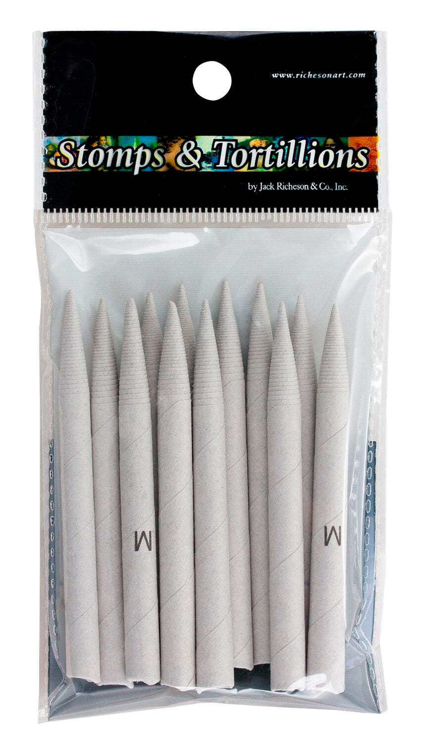 Blending tortillons are made from tightly spiral wound, soft gray paper, and can be used to smooth and blend pastels, charcoal and pencil. End can be cleaned up or sharpened by tearing a strip off the top. One end is pointed and measures 3-1/8 x 3/16 inches.
