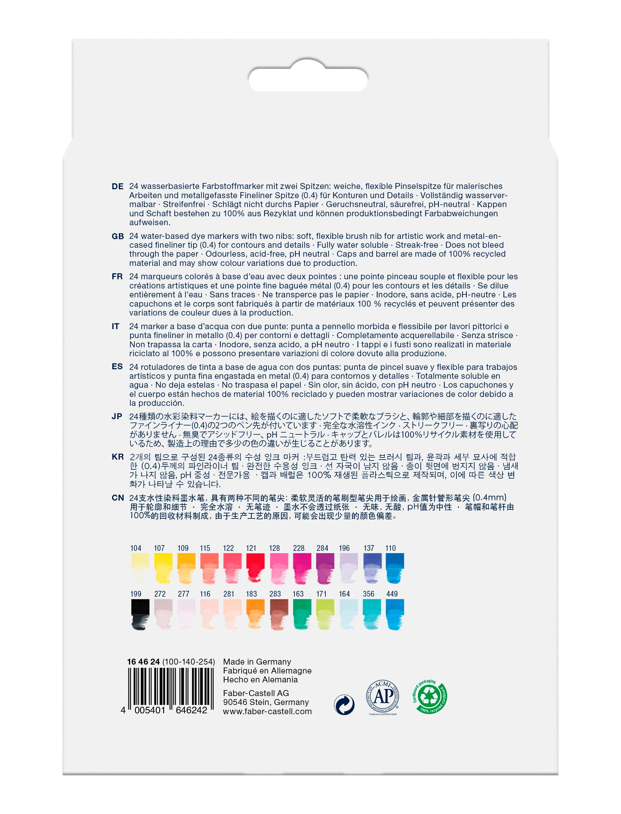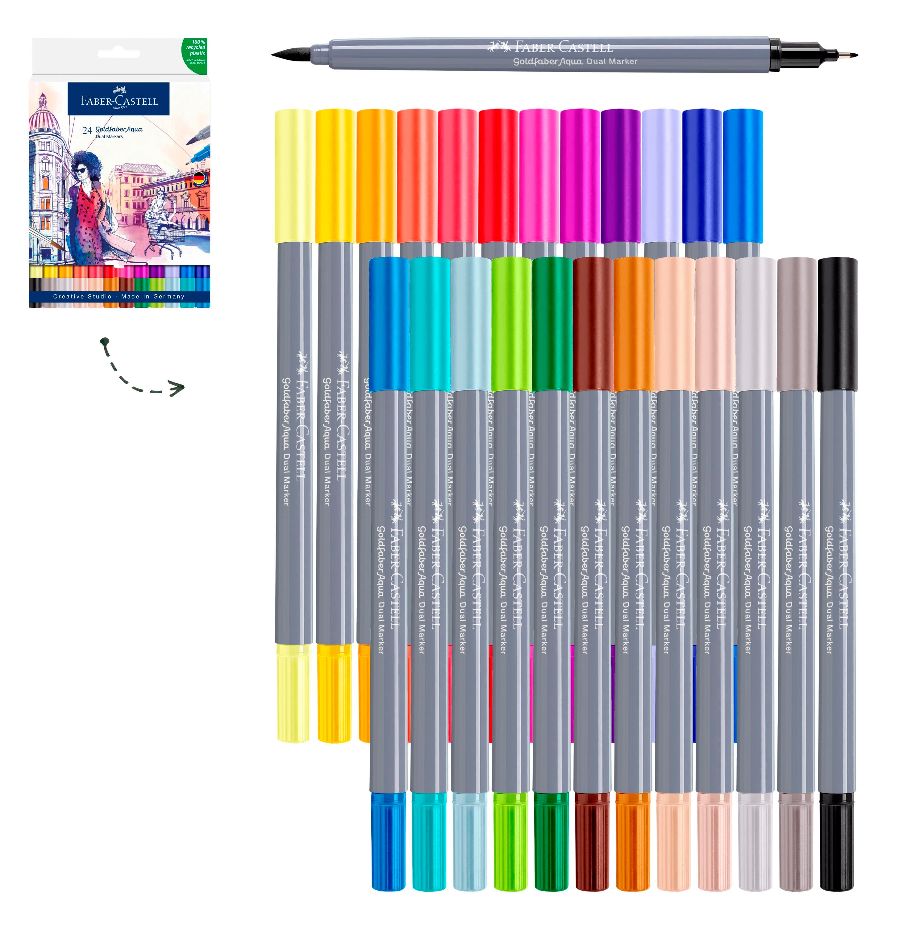 Faber-Castell Goldfaber Aqua Markers, Dual Ended, Assorted Colors, Set of 24