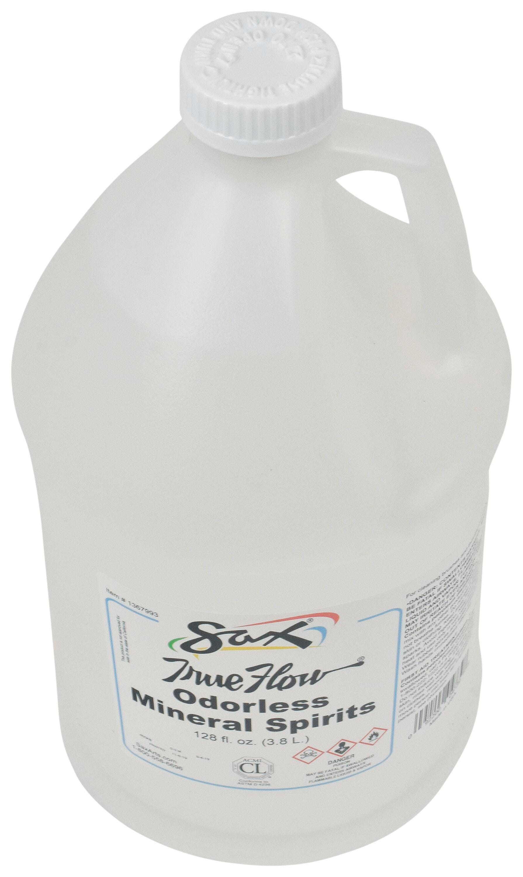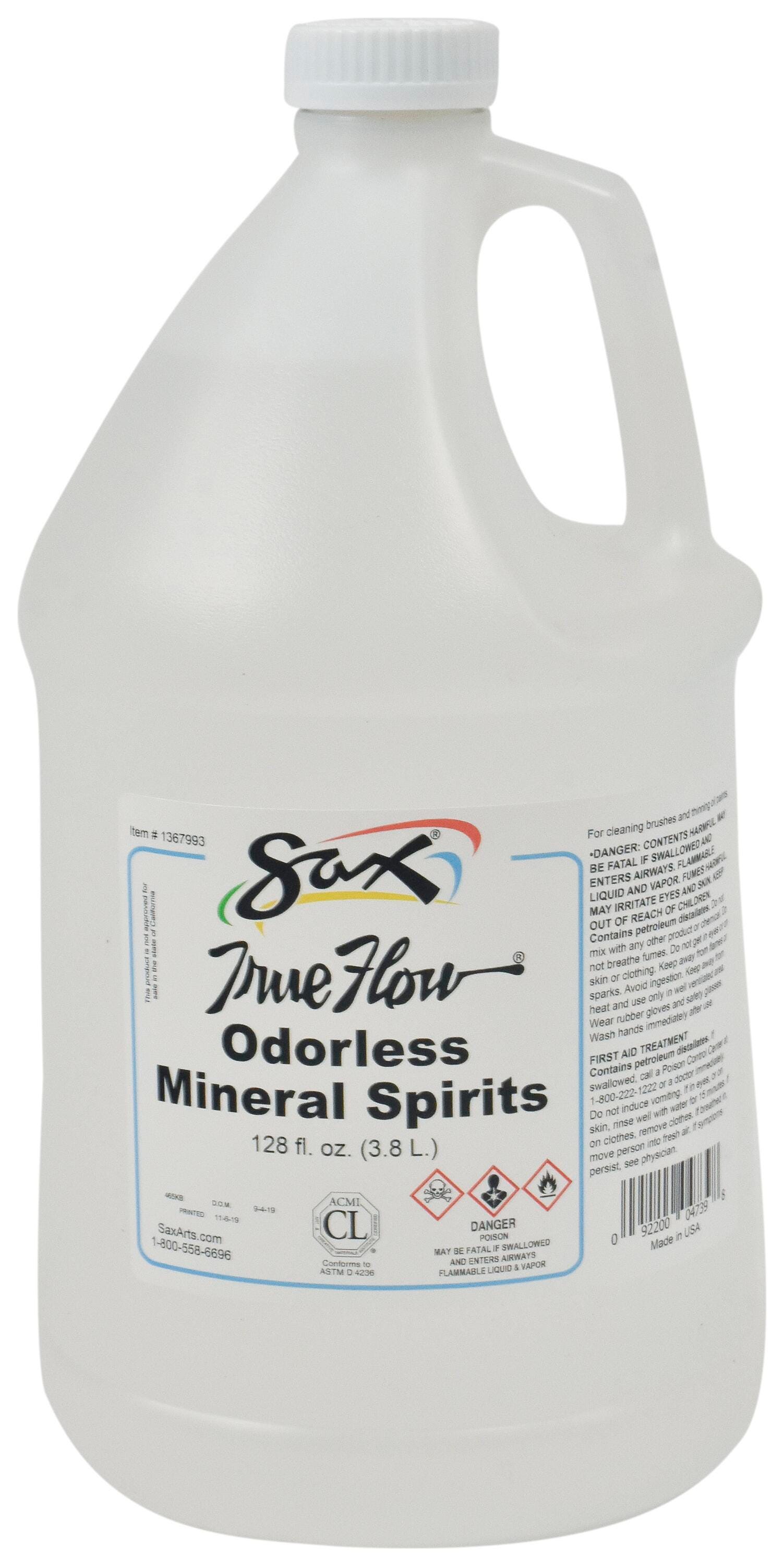 The True Flow Odorless Mineral Spirits from Sax are a must-have cleaning solution for your art room or classroom. The mineral spirits come in a 1-gallon container and can be used to clean brushes and to thin oil paints. Gallons cannot be sold in CA, CO, CT, DE, MD, NH, RH, and UT due to VOC restrictions.Features