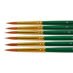 Sax golden taklon paint brushes with short handles and a round tip provide optimum snap and smooth application. Excellent brush strokes help students create their best projects while enhancing their painting techniques on different mediums. Our 6-pack of synthetic bristle brushes is perfect for all your crafting needs in the classroom or art studio. Use the size 4 brushes for very fine detail and small spaces. Golden nylon synthetic hair brushes are great with different mediums, including oil, acrylic, and watercolors.Features