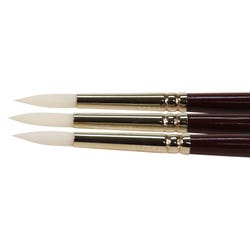 Sax white synthetic taklon paint brushes with short handles and round tips are durable, high-quality, and give you better control. They’re hand-crafted with white nylon taklon for clean brush strokes, and the short handle size allows for more precise, intricate brush strokes when working close to artwork. Get predictable brush strokes every time with great color capacity, crisp edges, and sharp points. The tip springs back even on rough watercolor paper. Our 6-pack of synthetic bristle brushes is perfect for all your crafting needs in the classroom or art studio. Use the size 8 brushes for detail, small spaces, and lines. White synthetic hair brushes are great with different mediums, including oil, acrylic, and watercolors.Features