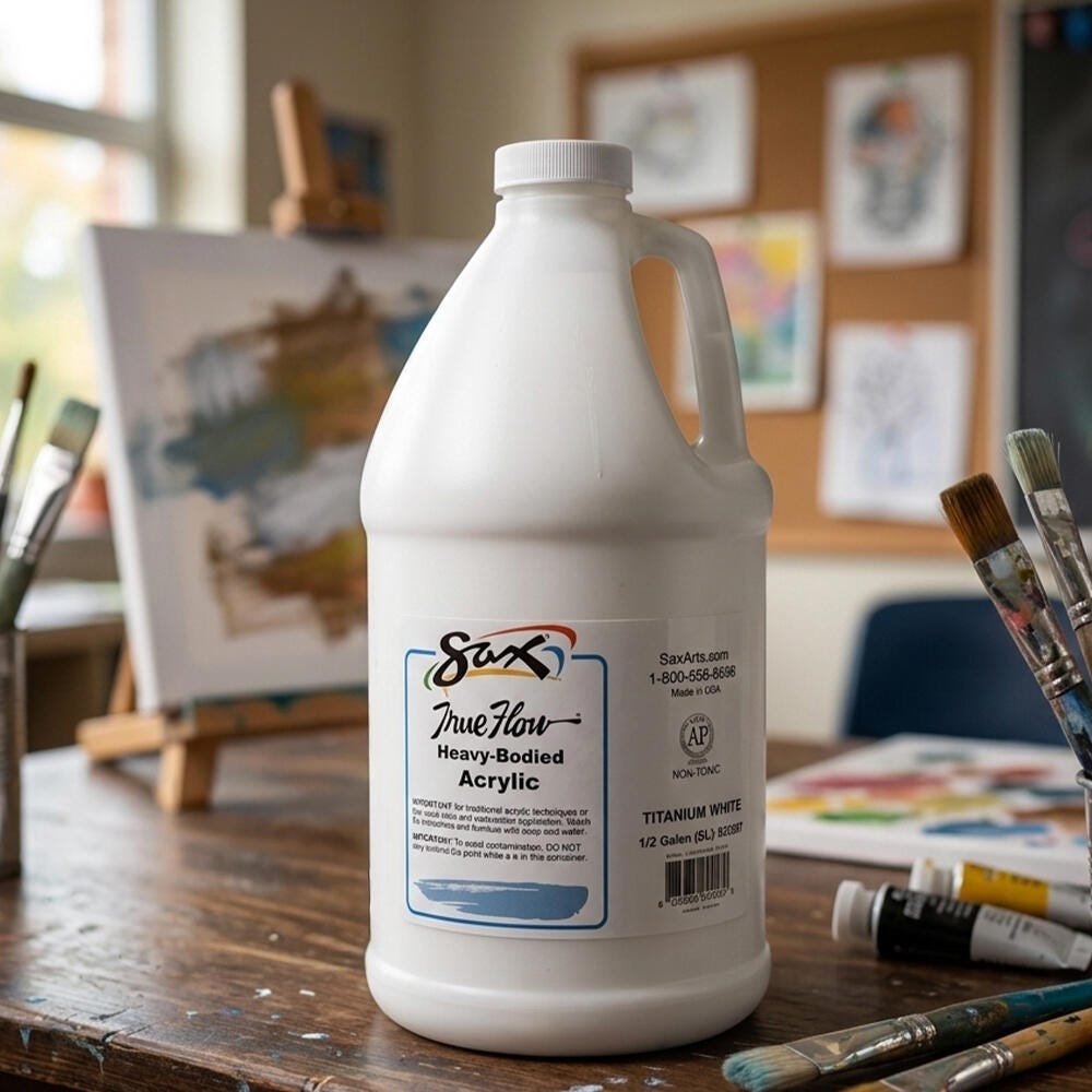 Create high-quality art pieces with Sax titanium white acrylic paint.