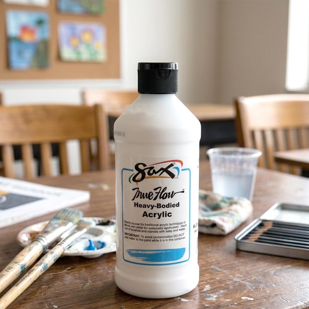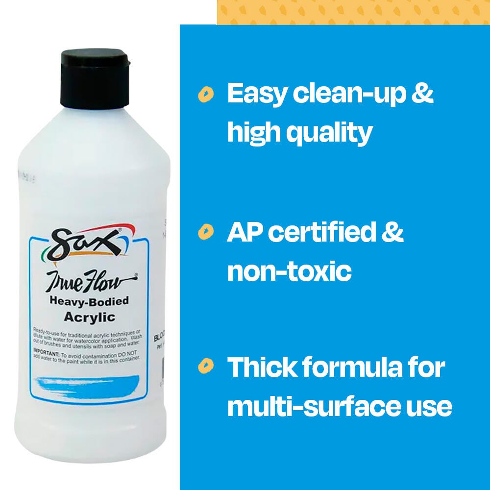 This Sax heavy body acrylic paint in a blockout white color comes in a convenient 1 pint bottle to accommodate the classroom. Non-separating and intermixable for a range of hues, our art paint is easy to apply. This paint dries to a matte finish and is ideal for traditional acrylic painting as well as block printing or silk screening. Enjoy excellent flow, coverage, blending, and drying for a variety of projects. Use the classroom paint for school assignments, art classes, group painting, or background canvas painting. Each acrylic paint comes in a durable plastic container for convenient handling and storage. Not recommended for outdoor use.