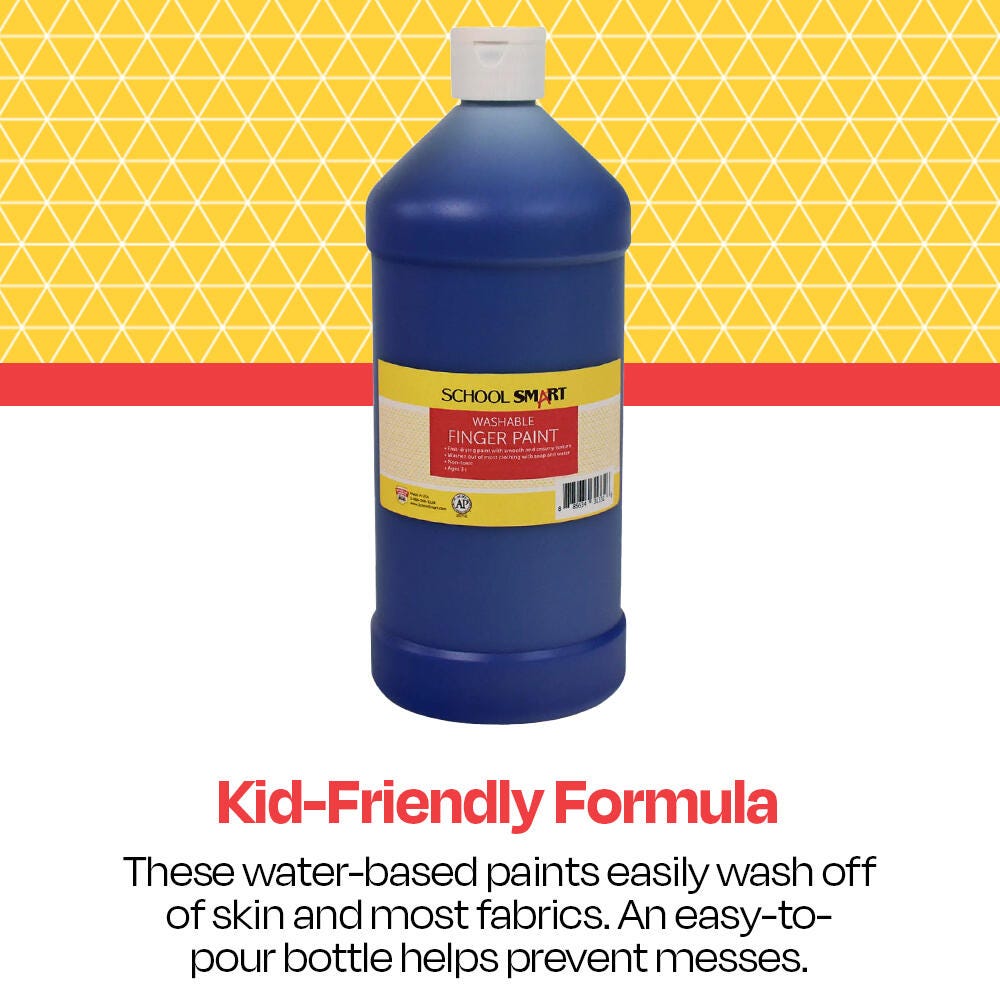 School Smart washable finger paint lets young children’s imaginations soar. This blue washable finger paint comes in an economical 1 quart bottle. This paint can be used for painting indoors or outdoors and arts and crafts projects at schools, childcare centers, or homes. Children can explore the tactile world through hand and finger painting for beginners. Little hands have fun, while clean up afterward is a breeze for teachers and parents. The vibrant, fast drying paint for kids has a smooth texture. This non-toxic finger paint washes out of most clothing with soap and cold water.