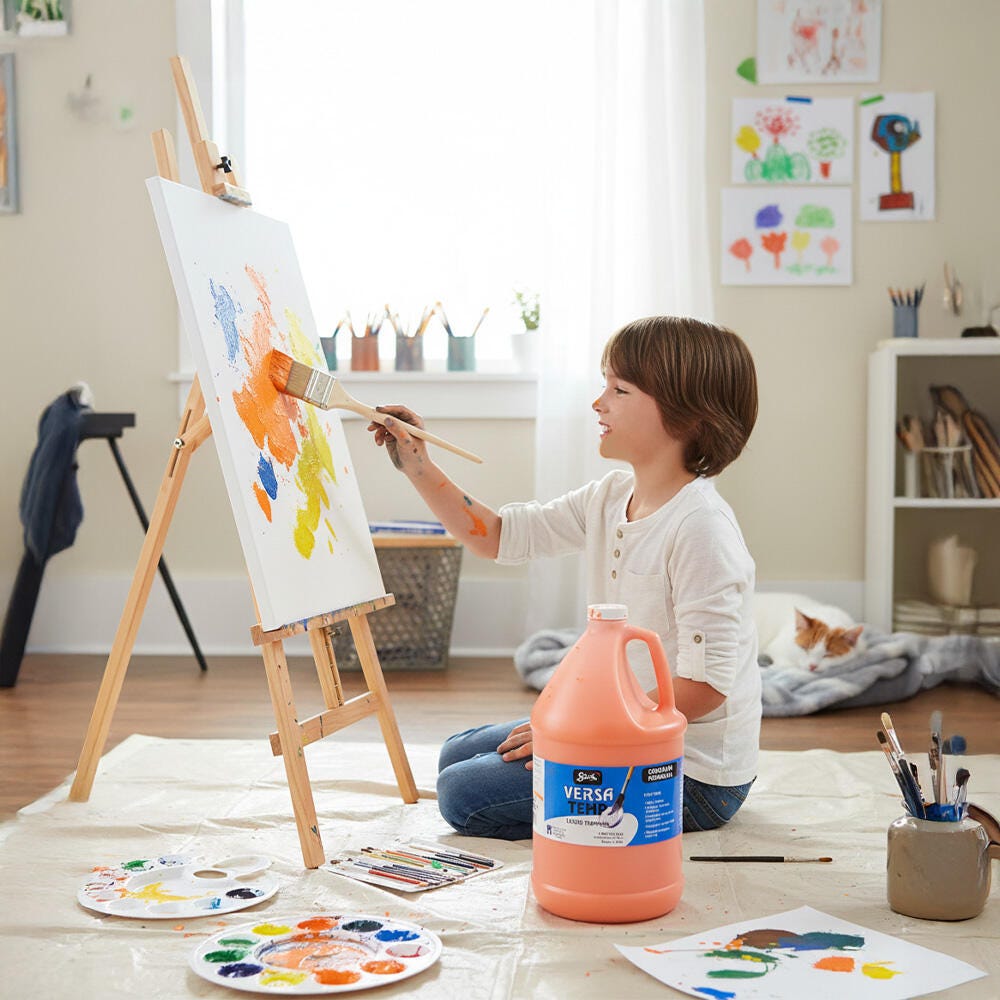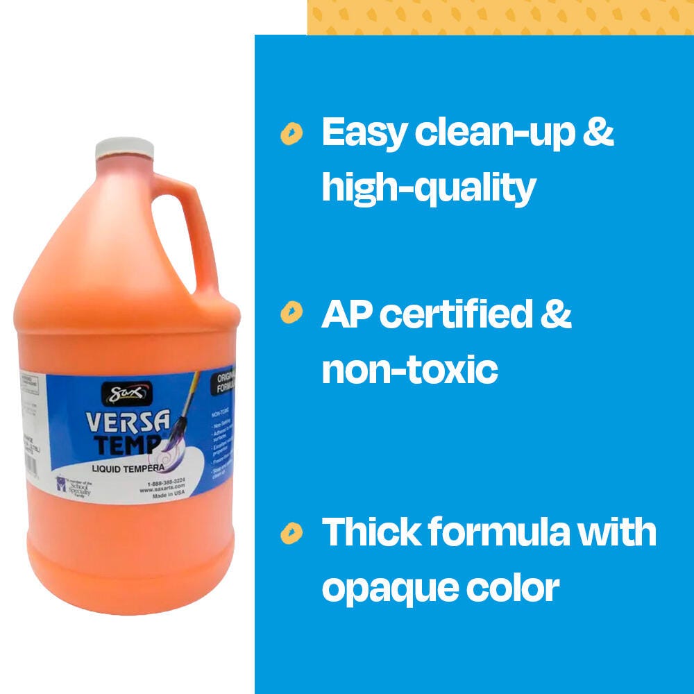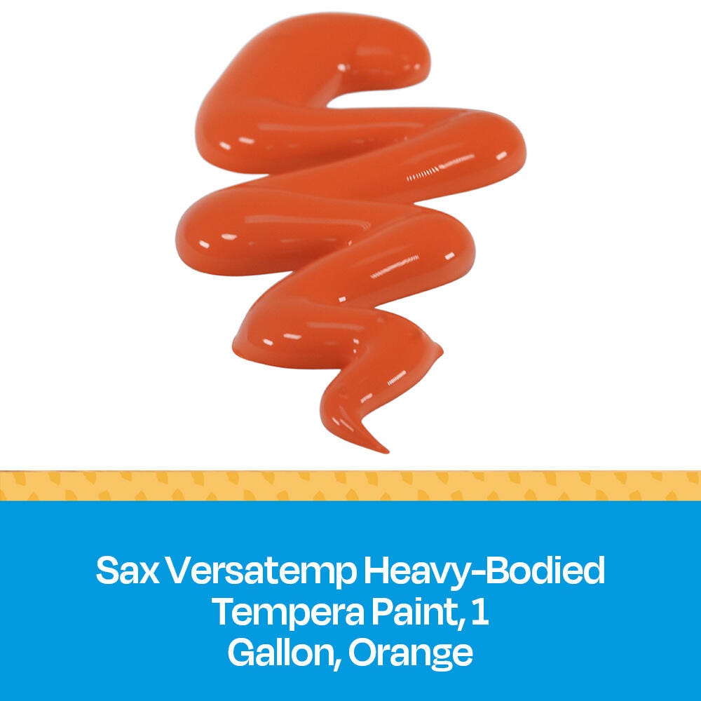 Sax Versatemp heavy-bodied tempera paint in orange produces bold, vibrant results. Foster creativity with a paint that resists cracking and chipping. The large gallon bottle is easy to pour and store, and is perfect for sharing in the classroom. Complete art projects, posters, and signs that stand out with one shade or craft new hues by mixing. The heavy formula is easy to apply and mix.
