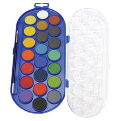 Designed with the student in mind, the set includes the finest quality of brilliantly colored opaque water colors. The non-toxic cakes measure 1-1/8 inch in diameter and come in a sturdy plastic box with lid. Lid can be used for mixing colors. AP certified.