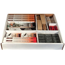 General's Sketchmate Classroom Art Pack includes sketching supplies for the entire class in one convenient package. Pack consists 12 sandpaper pads, 24 tortillons for blending, 12 hand-held pencil sharpeners and the book. Pack also includes a total of 168 latex-free pencils, 24 each of 2B and B top quality black charcoal pencils, 24 top quality white charcoal pencils, 24 each of HB, 4B and 2H drawing pencils and 24 extra smooth layout Ebony pencils.