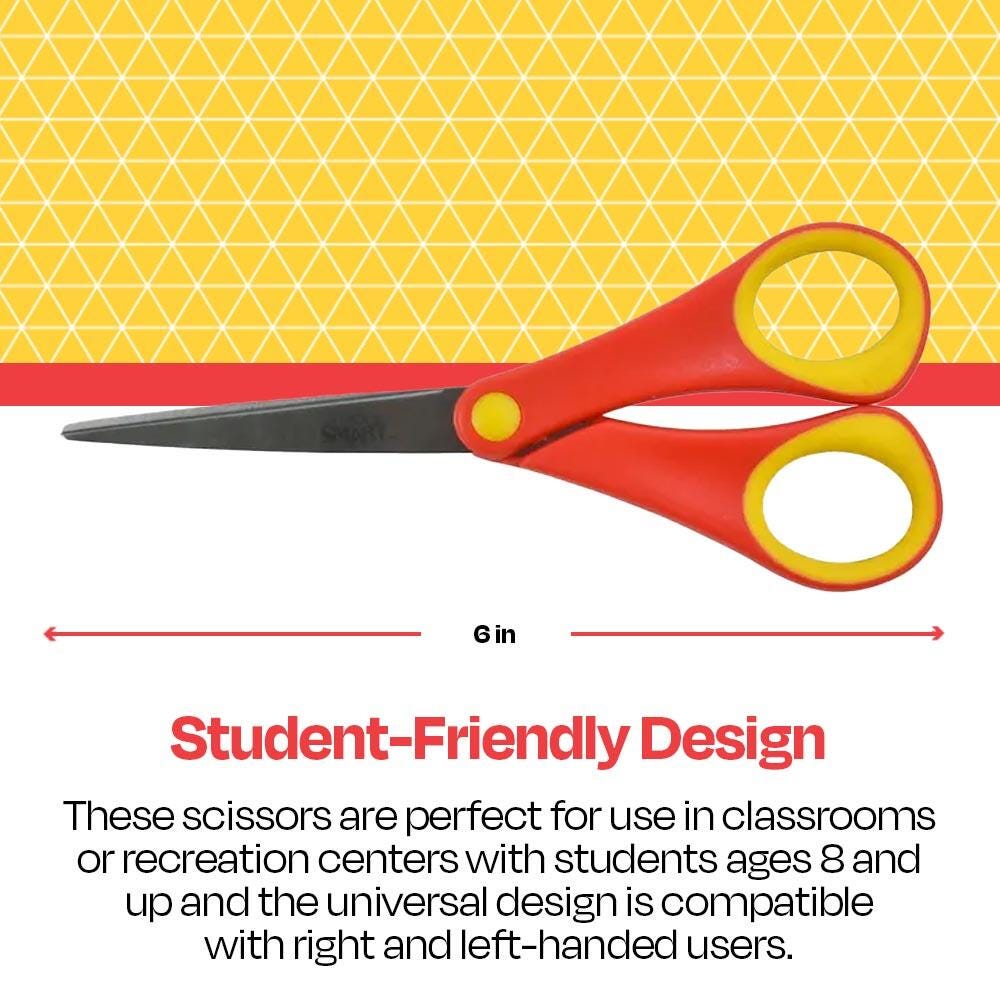 These 6 inch universal scissors for kids are ideal for elementary school, middle school, or home use