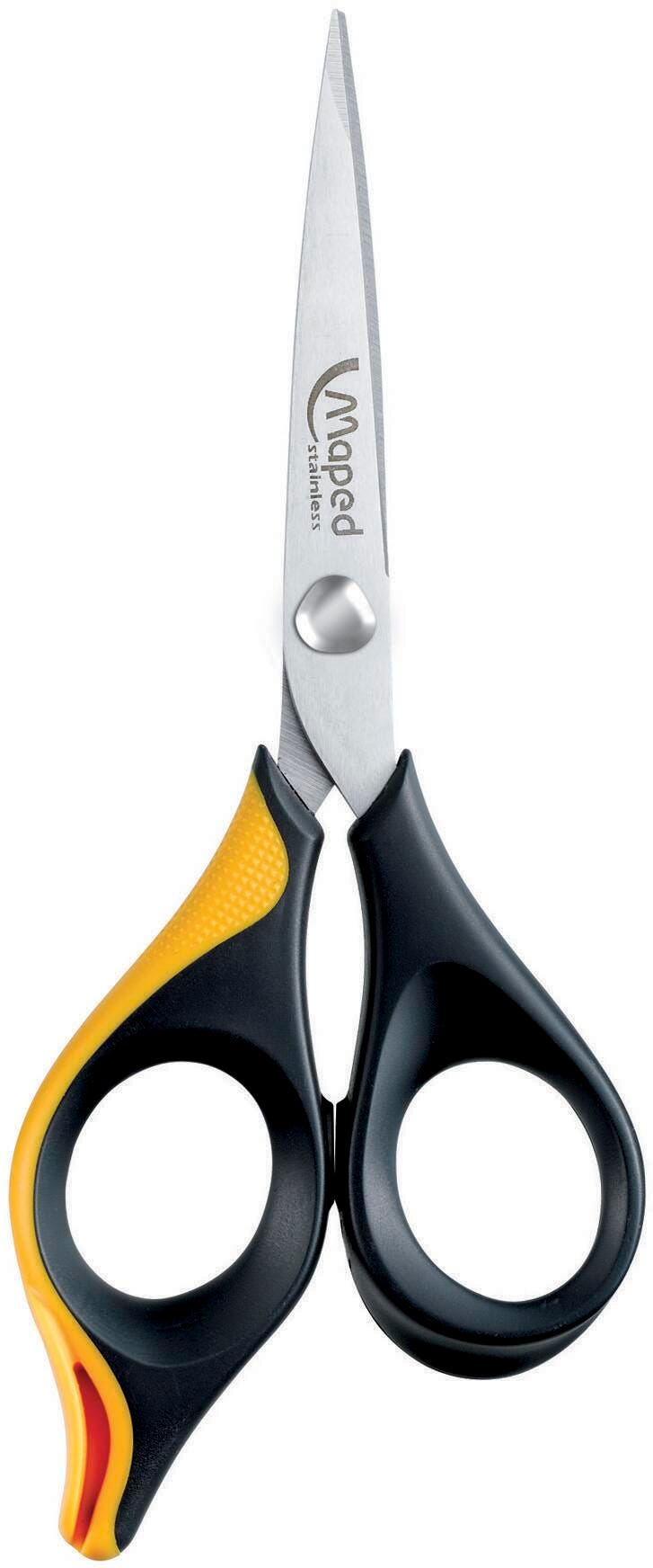 Maped Ultimate Precision Scissors are constructed with high-quality stainless steel blades, guaranteeing the perfect cut no matter what the job. Patented double soft ergonomic handle reduced pressure points. Pointed tips allow for precise cutting on a variety of materials. Length 5 inches.