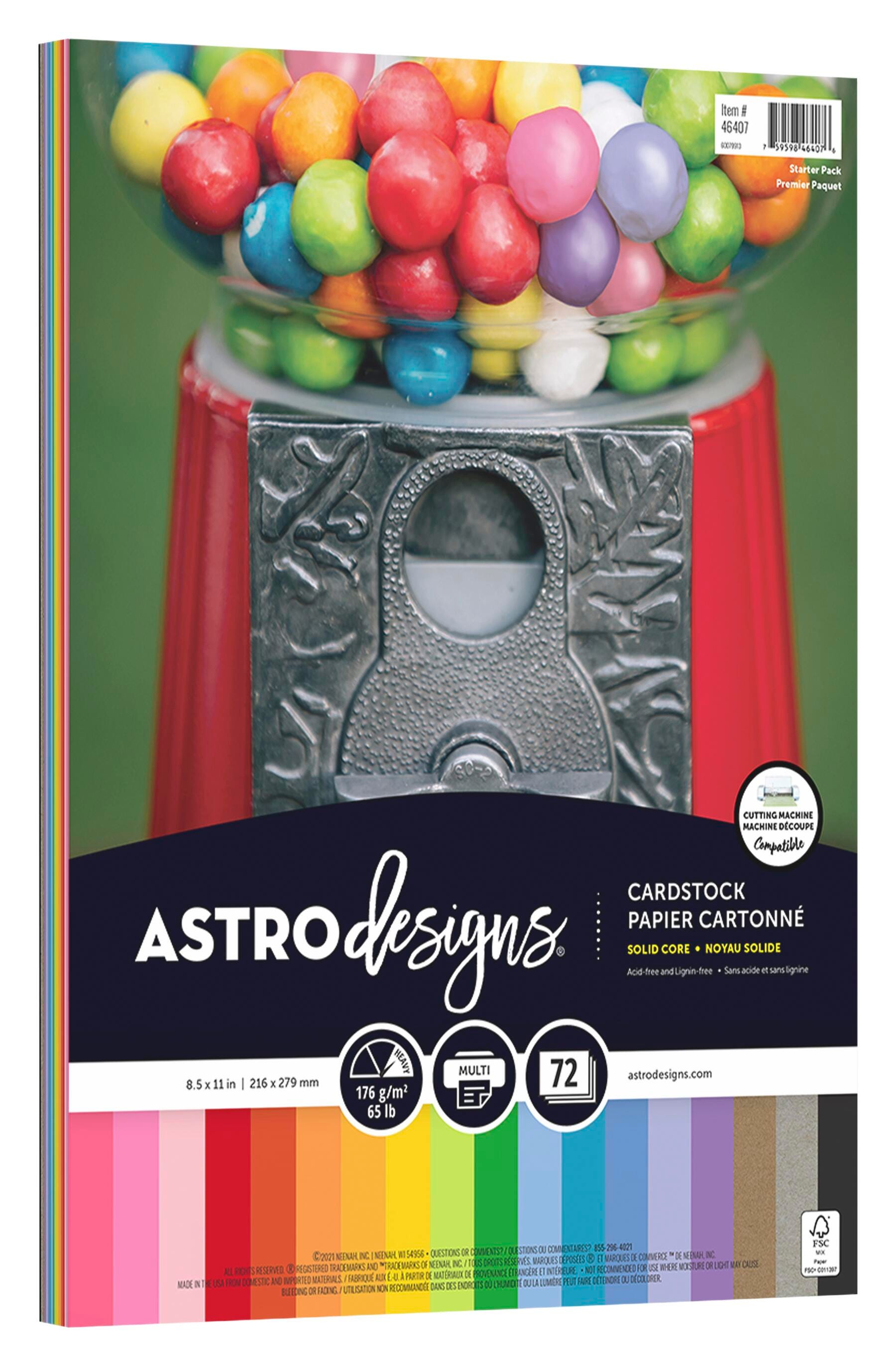 Astrodesigns Starter Kit Cardstock, 8-1/2 x 11 Inches, 65 lb/176 gsm, 18-Color Assortment, 72 Sheets
