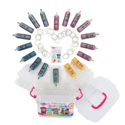 Throw the ultimate bash with this all-inclusive Tulip Tie-Dye Party Kit that is bursting with bold, colorful fun! Dyes come in 2.75 squeeze bottles. The dyes are safe to machine wash and the colors stay bright and bold through repeated washings. Kit includes 123 pieces total that are enough supplies for 6 people or about 36 projects.Features