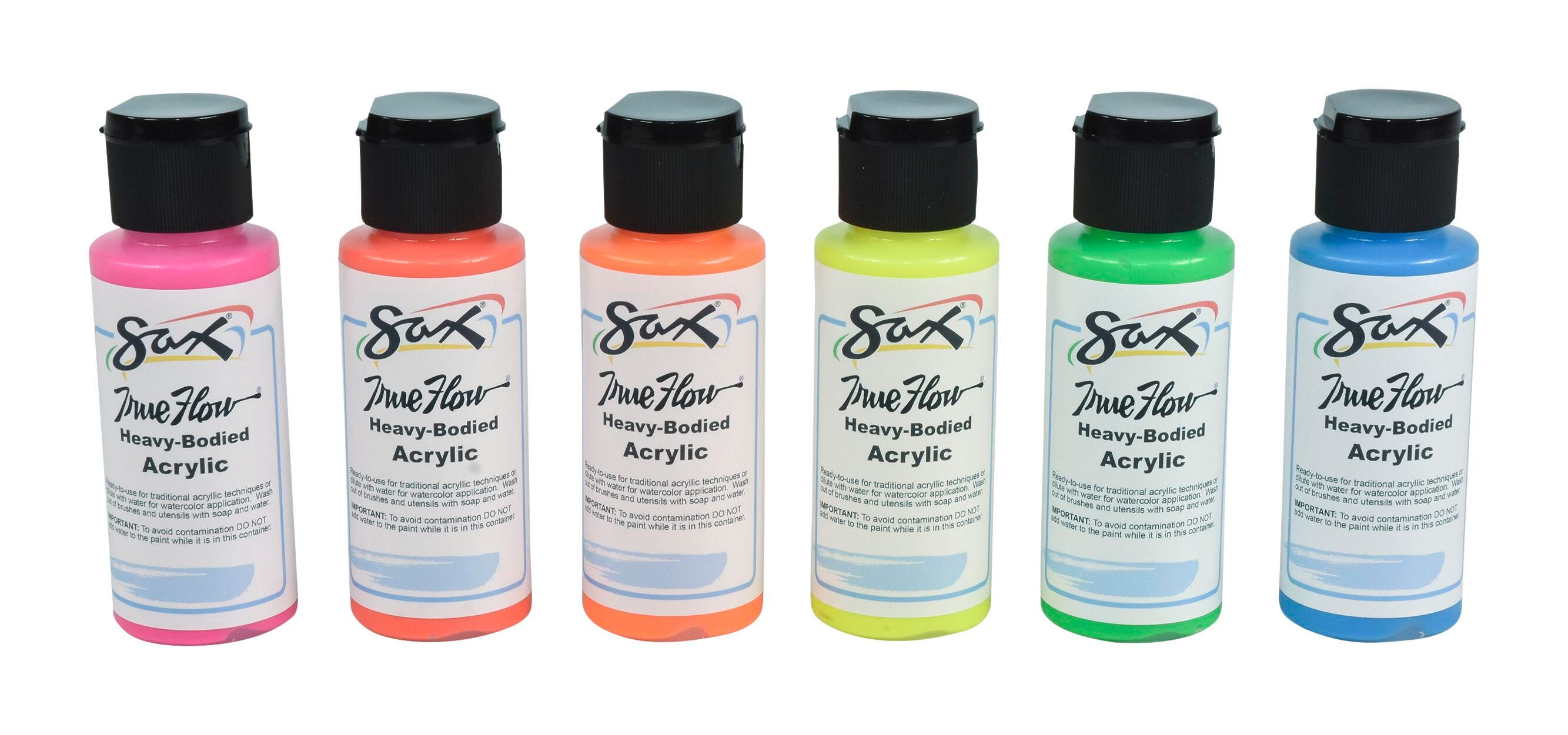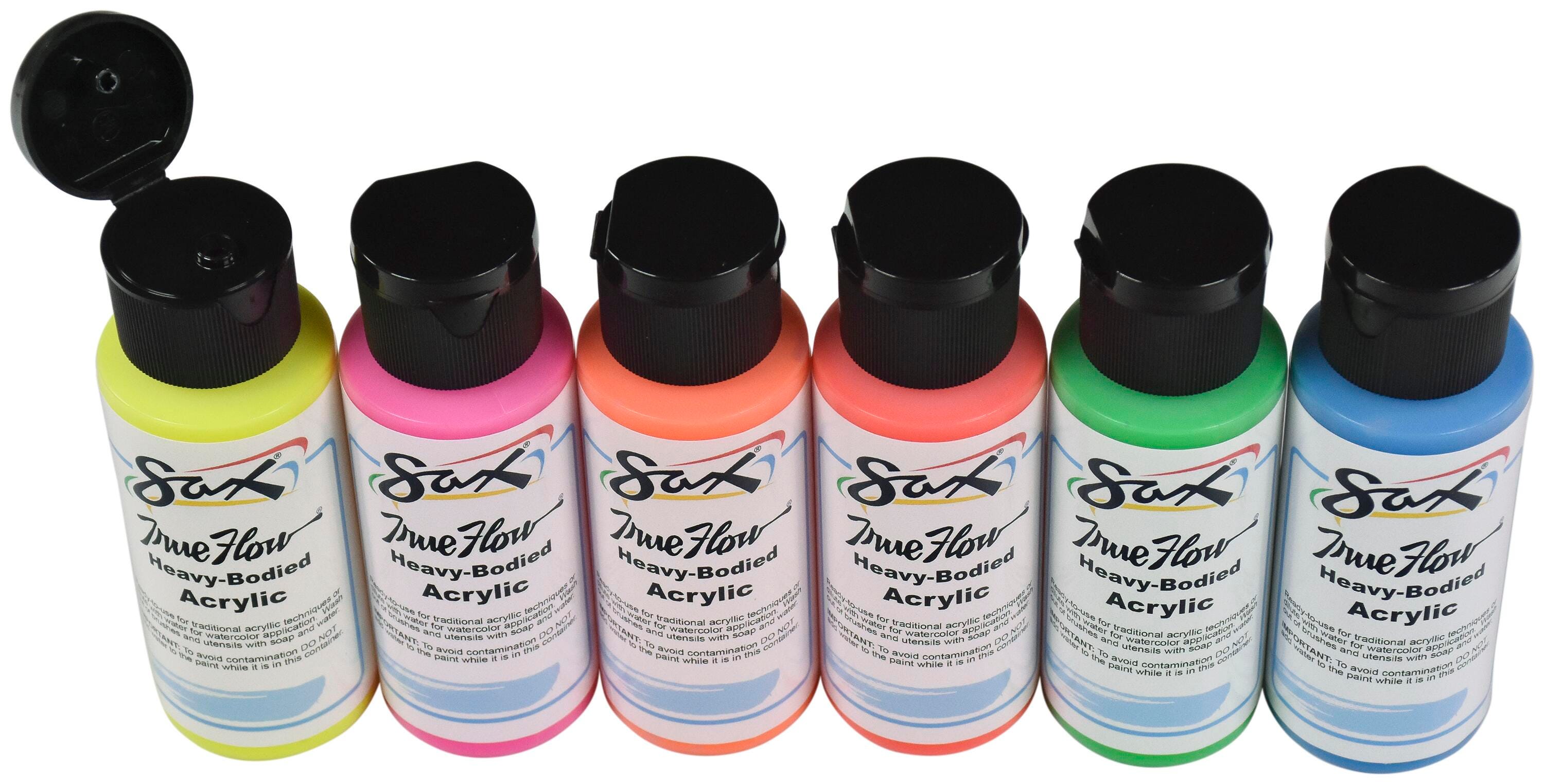 Sax Heavy Body Acrylic Paint, 2 Ounce Bottles, Assorted Neon Colors, Set of 6
