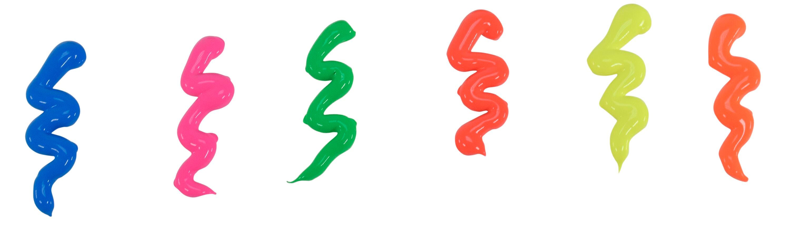 Each bottle contains a different fluorescent color to foster creativity in the classroom