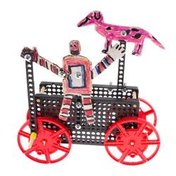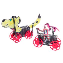 Kids create their own unique "pull-toy" prototypes with animated parts that move as they roll! Watch as tails wag, heads bob, hands wave or wrestlers "wrassle." Kids will follow the engineering design process to brainstorm, construct, test, and redesign innovative "toys." From simple machines to linkages and mechanical advantage, kids can explore tons of science and engineering principles as they make and test different designs. The Toy Design Workshop is also an excellent introduction to marketing and entrepreneurship, as kids can develop brand identities, logos, and sale pitches for their creations. Grades 3 – 8+ (different documents for different ages). Some adult assistance is helpful for 3rd-graders. TeacherGeek is not a toy; it’s way better! Kids love making real things, especially when they get to use age-appropriate tools. Kids will need a TeacherGeek Multi-Cutter, TeacherGeek Reamer, and a Phillips screwdriver.Features