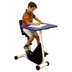 The Pedal Desk takes the fun of a bicycle and brings it indoors! The simple and smooth pedal desk is a favorite among students as they pedal their way to success, working their legs while also working! Pedals are silent, ensuring there's no interference with classroom instructions or activities. Pedal desk comes complete with scratch-resistant rubber feet and wheels for portability. Desk measures 28 L x 40 W x 35-45 H inches. Desk is ideal for ages 6 to 12 and has a weight limit of 250 pounds.Features