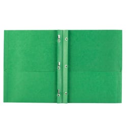 These Two Pocket Folders from Avery are a vibrant, bright green for easy organization in the classroom, office, or home. The folders are constructed using sturdy textured paper that reduces the look of wear and tear. Each folder holds up to 70 sheets of letter-size paper, 35 per side, or 50 in the center-mounted fasteners with 10 sheets in each pocket. These handy folders are perfect for important presentations, school projects, or keeping important documents organized at home. The folders are also easy to customize thanks to die-cut business card holders on the left pocket.Features