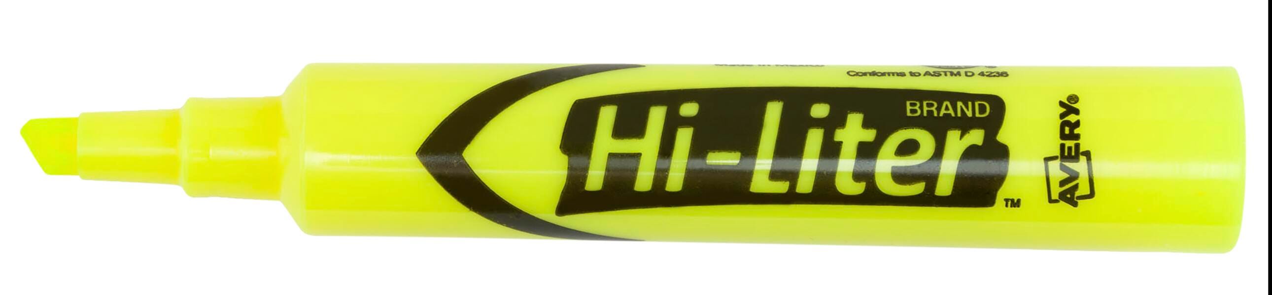 Bring attention to essential words and phrases with Avery Hi-Liter Desk Style Highlighters. The molded chisel tip of these highlighters gives you the precision to highlight or underline text in an eye-catching fluorescent yellow ink. Keep your documents in pristine condition with SmearSafe highlighter ink that doesn’t bleed through most paper and won’t smudge pen, marker or inkjet inks. Built to last, these highlighters have a resilient tip that won’t fray and a comfortable faceted barrel with a long-lasting ink supply. Value Pack of 200 highlighters.Features
