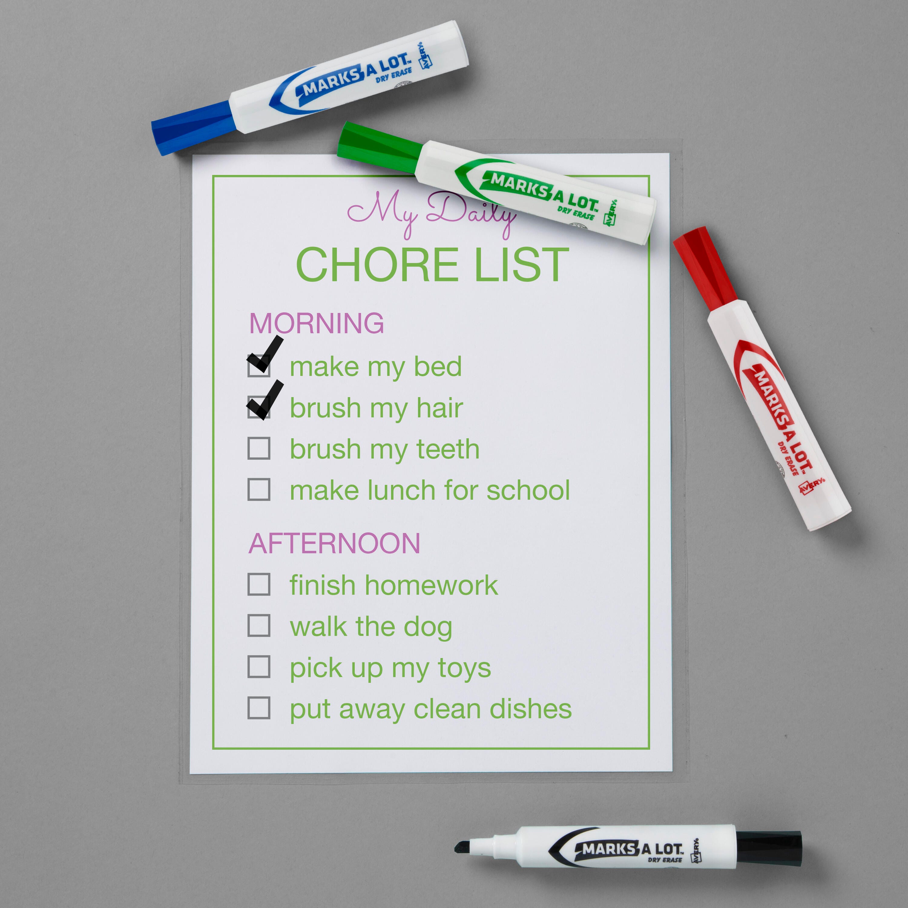 Avery Marks-A-Lot Dry-Erase Marker features bold, low-odor ink that wipes off easily and is ideal for use in office, school or home. Marker with a durable 3/16 inch chisel tip works well on whiteboards, glass and other non-porous surfaces. Assorted set of 24 includes 12 black and 4 each of blue, red and green.