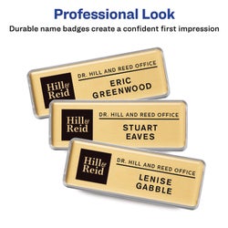 Avery Professional Reusable Name Badge System for Laser Printers, Gold, 1 x 3 Inches
