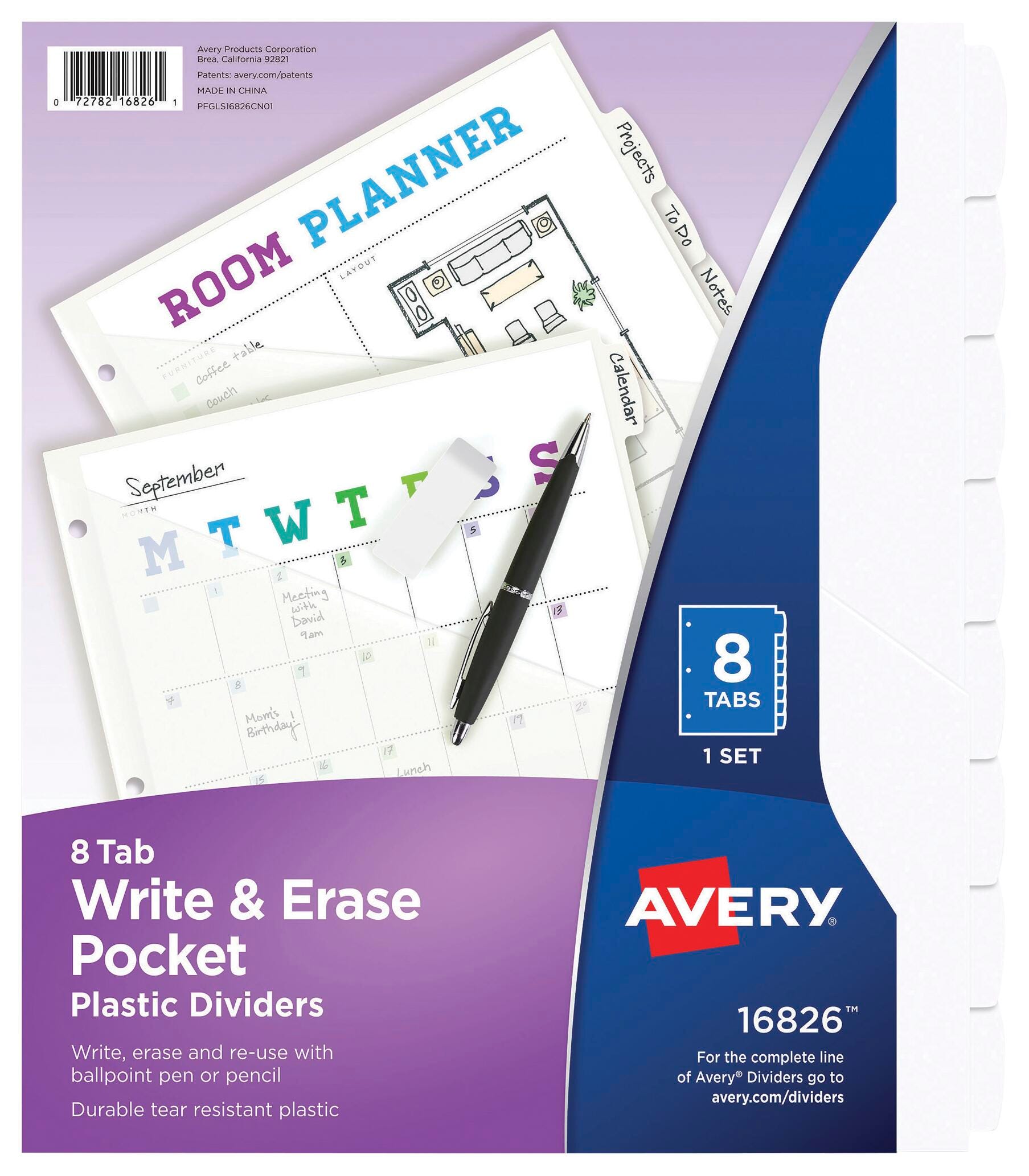 Write and Erase Plastic Dividers deliver flexible customization for your frequently changing files. Tabs feature an erasable surface so you can customize tabs using a ballpoint pen or pencil. Write, erase and reuse again. Stylishly shaped tabs are also larger, providing more writing space than standard tabs. Durable plastic allows frequent reference. Dividers are three-hole punched so they are ready for use in letter-size binders.