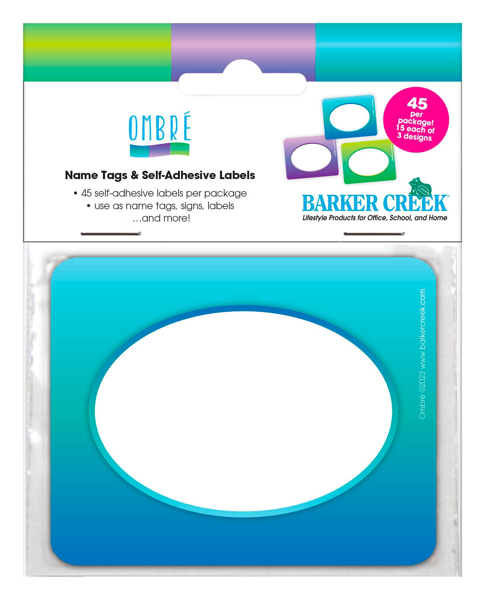 Our new Ombré Name tags and self-adhesive labels are perfect for all ages! Package includes 45 multi-purpose self-adhesive name tags -- 15 each of 3 designs. The designs feature beautiful ombré colors in vibrant aqua/blue, green/lime, and lilac/purple. These name tags are perfect for the first week of school, field trips, assemblies, special visitors, staff meetings and more! They can also be used to personalize file folders, binders, and notebooks. The uses are limited only by your imagination!